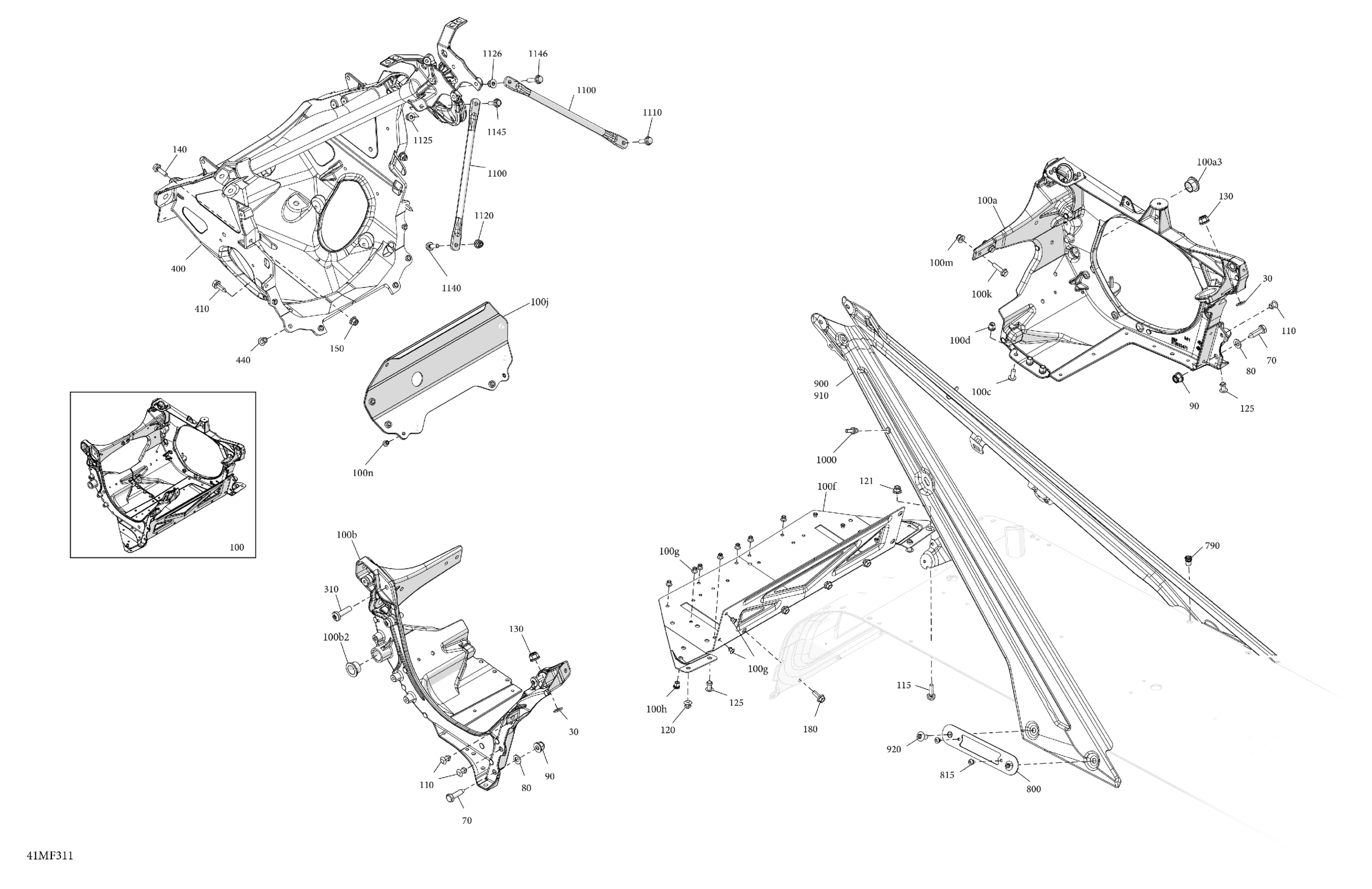 Ski-Doo North America - MXZ - X-RS with Competition package - 850 E-TEC Turbo R - UCTB - Mineral Blue - 15X137X1.25RSII2P Track, 2026 06- Frame - System - Front Section Diagram