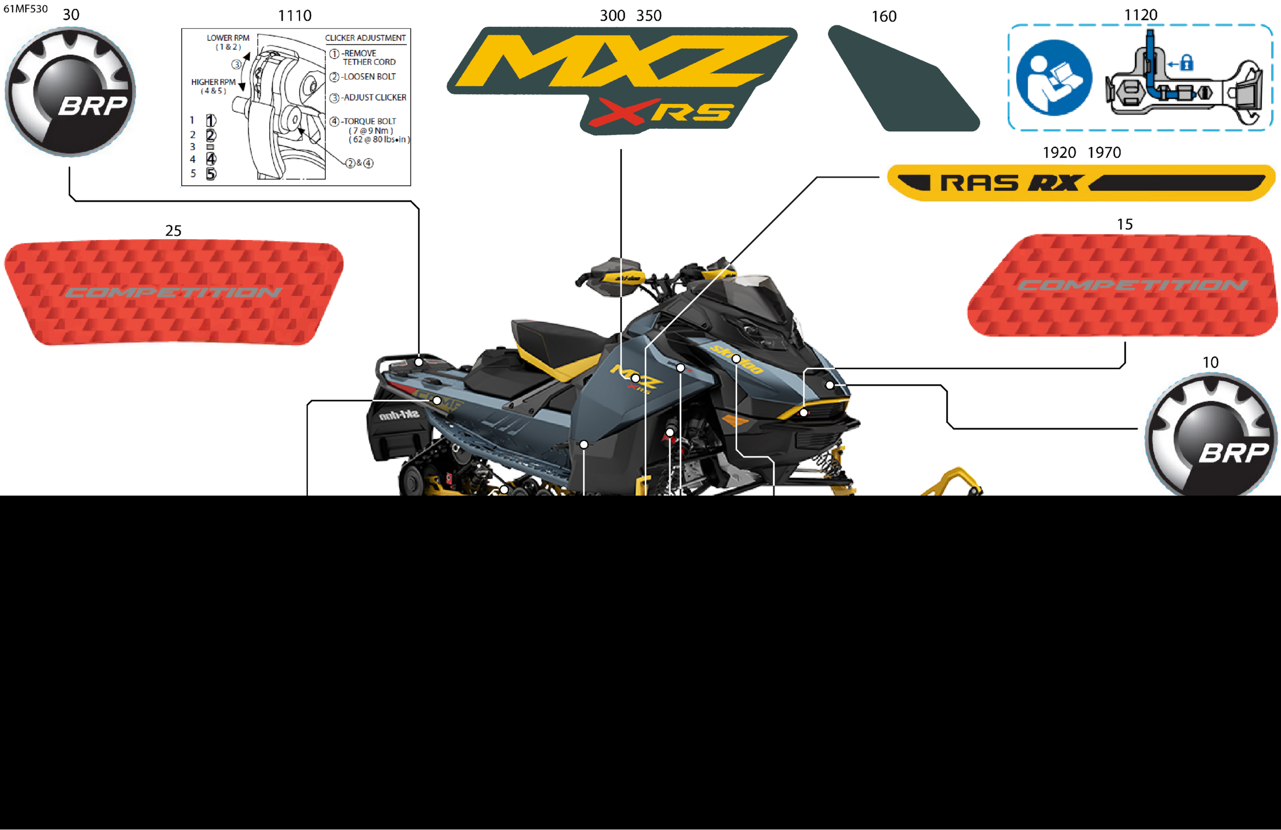 Ski-Doo North America - MXZ - X-RS with Competition package - 850 E-TEC Turbo R - UCTC - Mineral Blue - 15X137X1.25RSII2P Track, 2026 07- Body - Decals Diagram