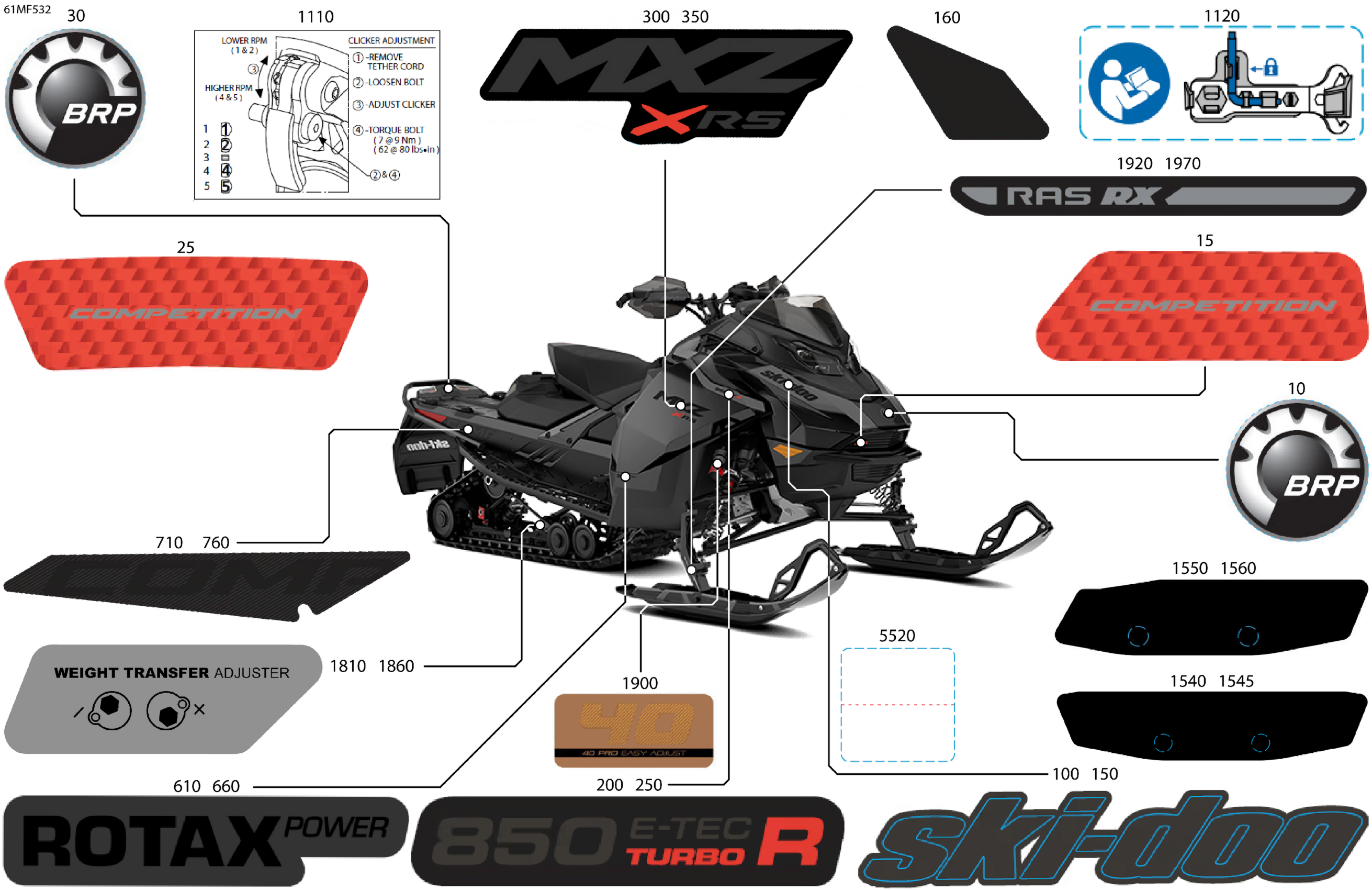 Ski-Doo North America - MXZ - X-RS with Competition package - 850 E-TEC Turbo R - UCTE - Deep Black - 15X137X1.25RSII2P Track, 2026 07- Body - Decals Diagram