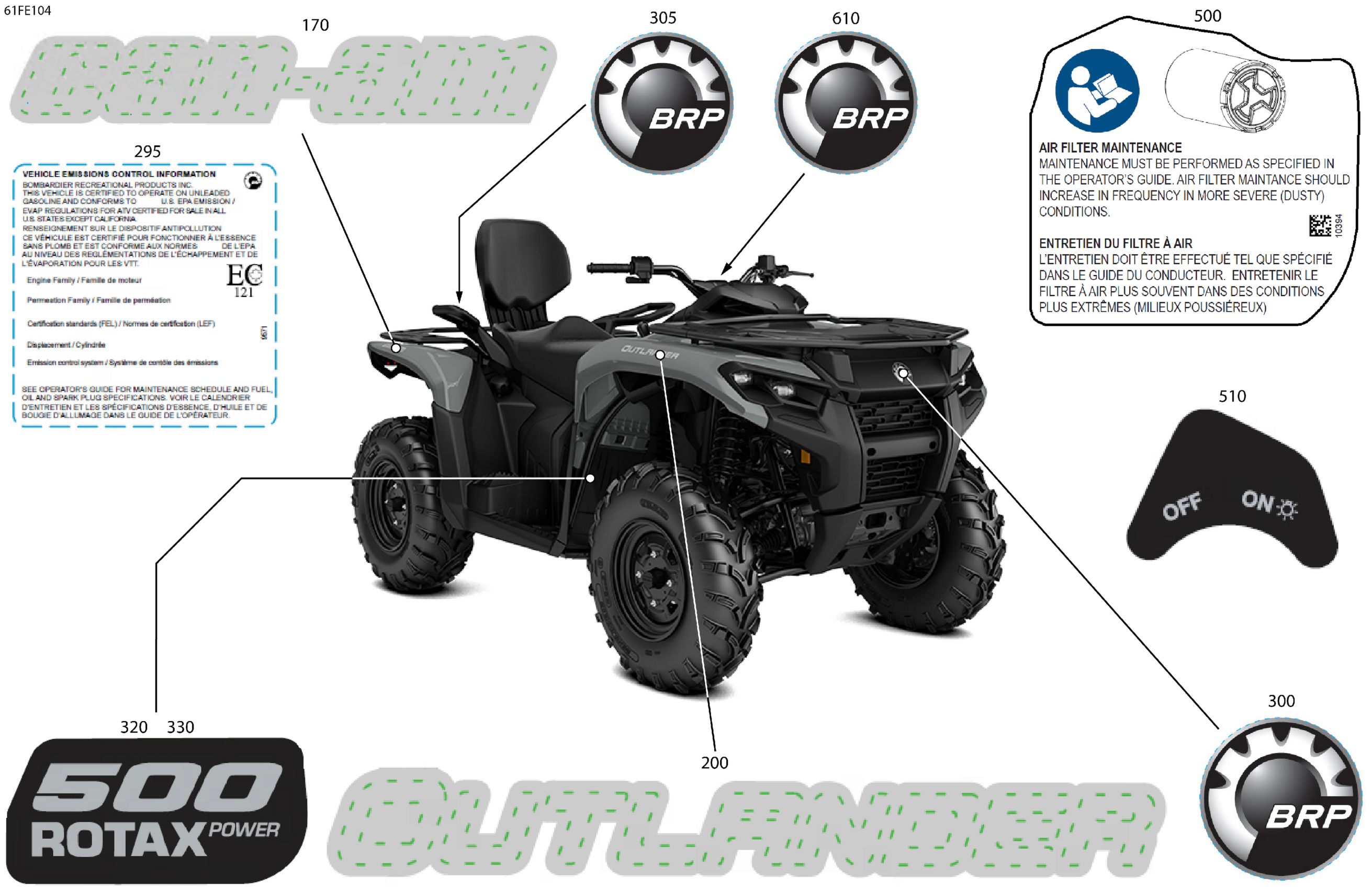 Can-Am OUT-MAX - 4X4 - DPS - 500 - 1VSA - Granite Grey - 2025 Body - Feature Decals Diagram