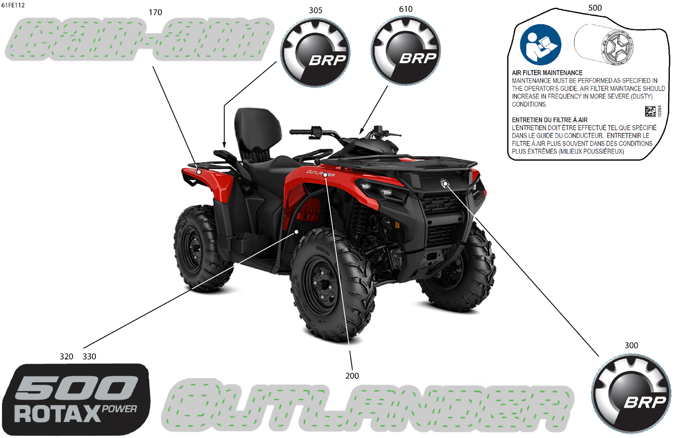 Can-Am OUT-MAX - 4X4 - DPS - 500 - 1VSG - Legion Red - 2025 Body - Feature Decals Diagram