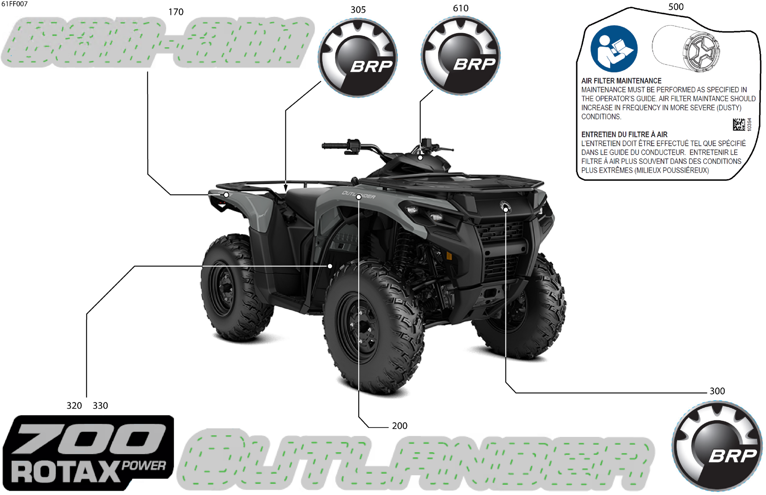 Can-Am OUT-MAX - 4X4 - DPS - 700 - 1WTF - CALI - Granite Grey - 2026 Body - Feature Decals Diagram