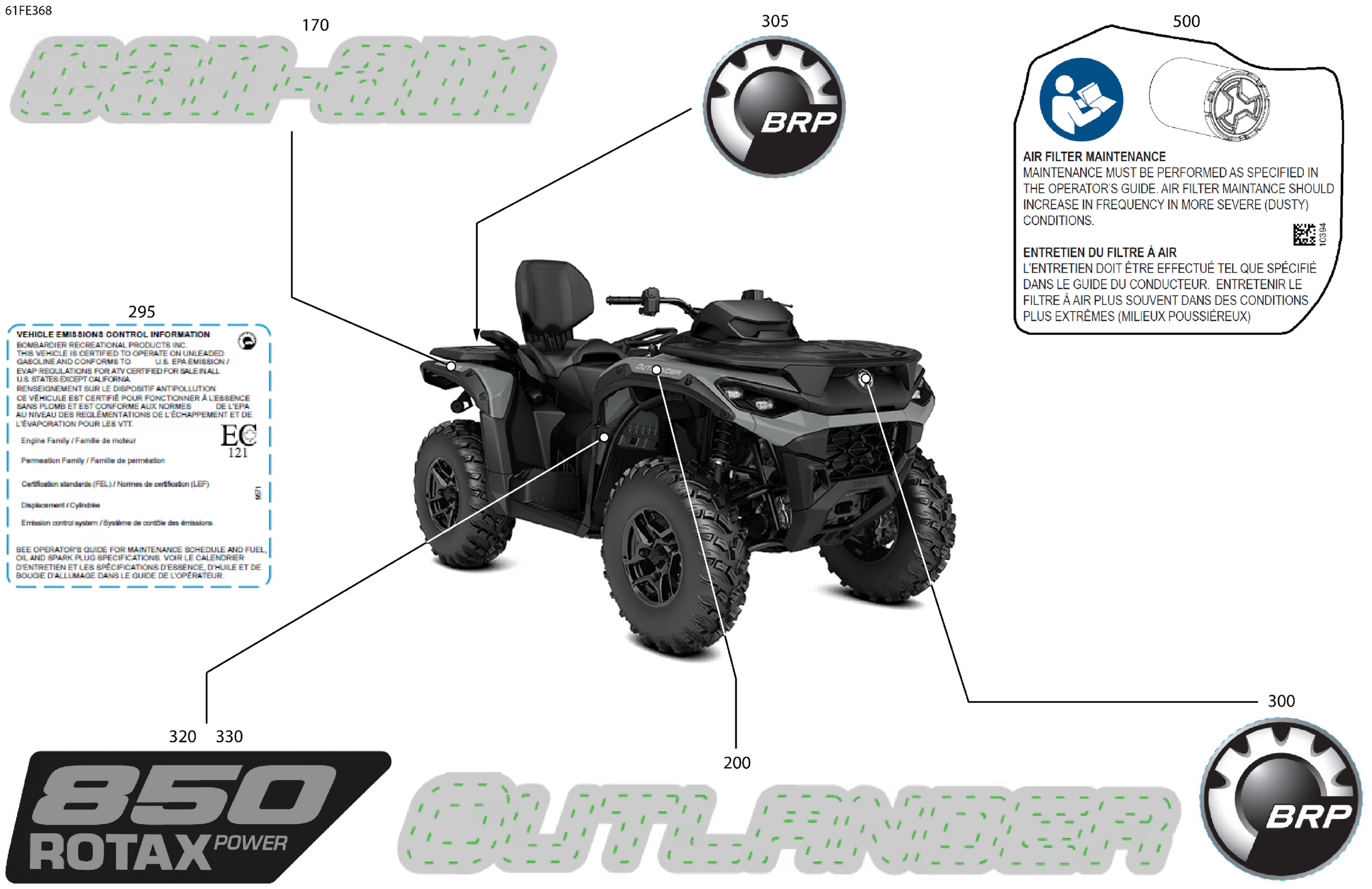 Can-Am OUT-MAX - 4X4 - DPS - 850 - 4PSA - Granite Grey - 2025 Body - Feature Decals Diagram