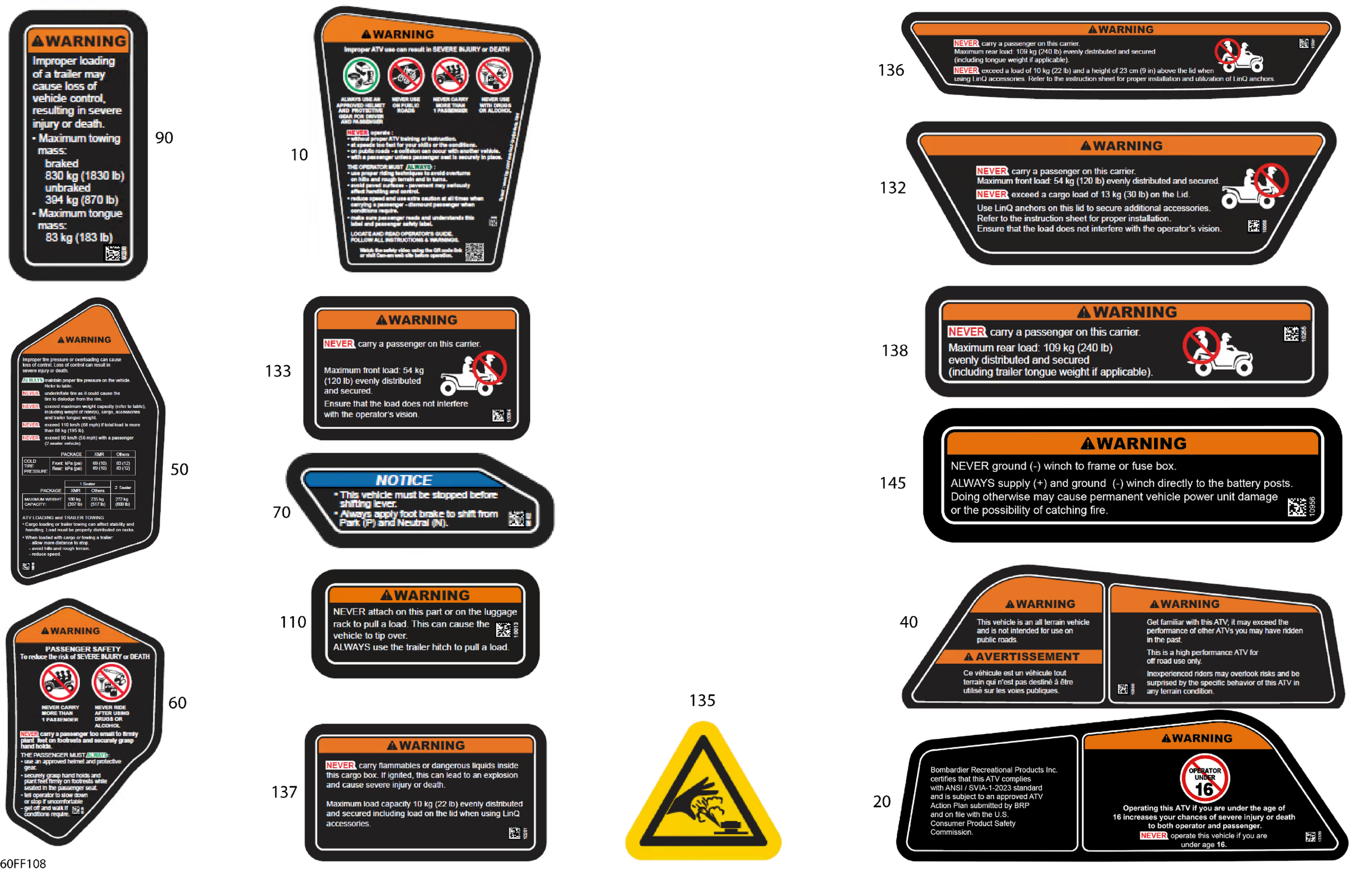 Can-Am OUT-MAX - 4X4 - DPS - 850 - 4PTB - CALI - Granite Grey - 2026 Body - Warning Decals Diagram