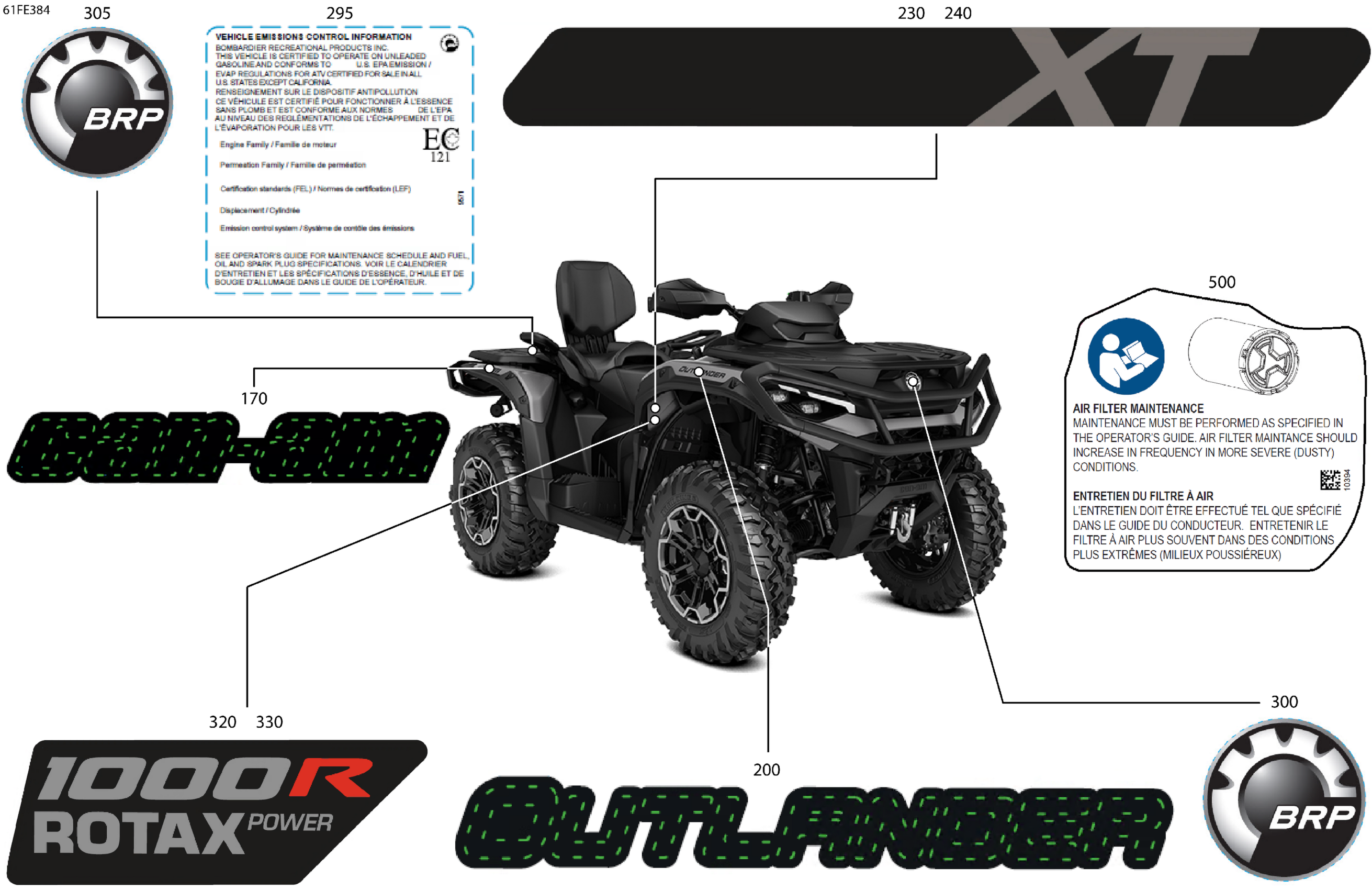 Can-Am OUT-MAX - 4X4 - XT - 1000R - 4TSA - Platinum Silver Satin - 2025 Body - Feature Decals Diagram