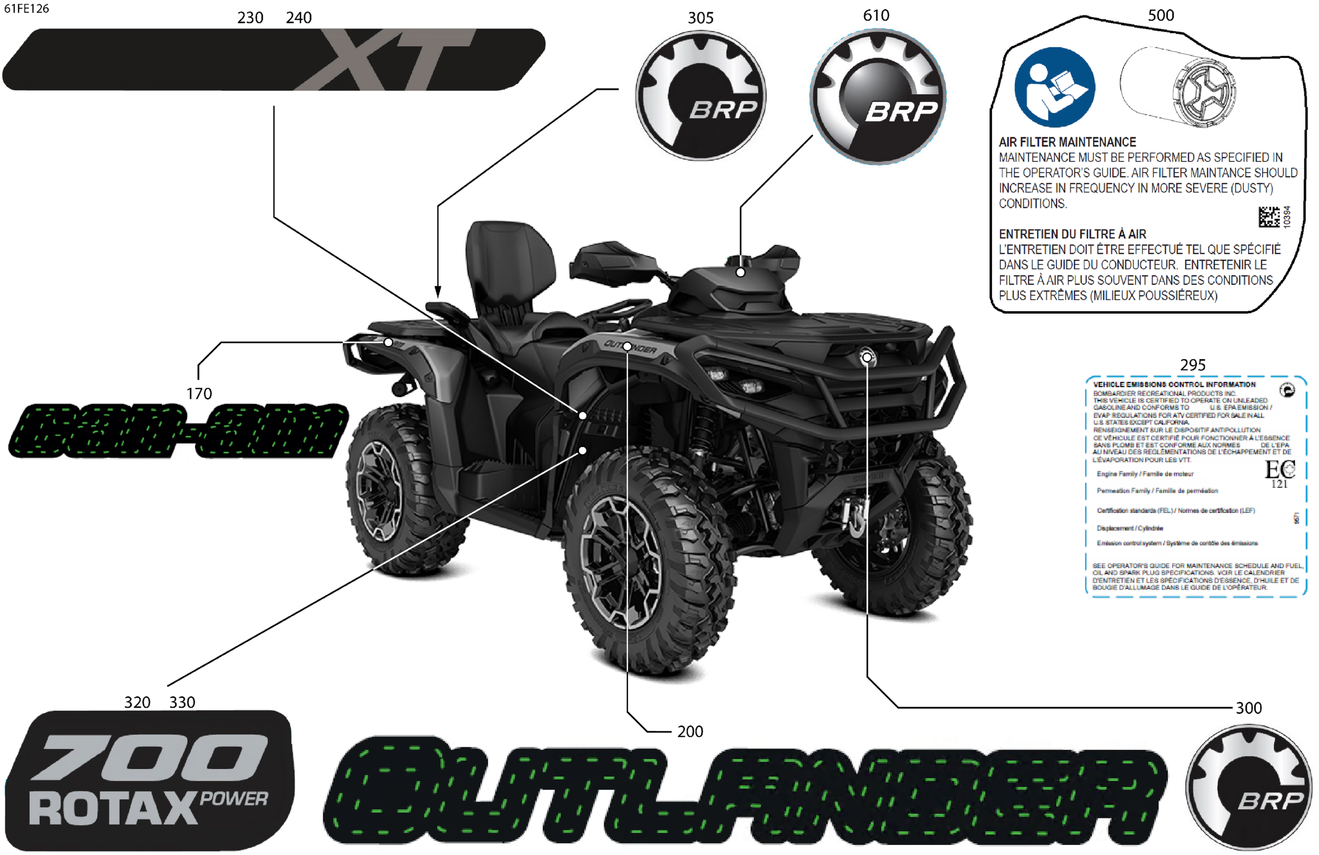 Can-Am OUT-MAX - 4X4 - XT - 700 - 1YSA - Platinum Silver Satin - 2025 Body - Feature Decals Diagram