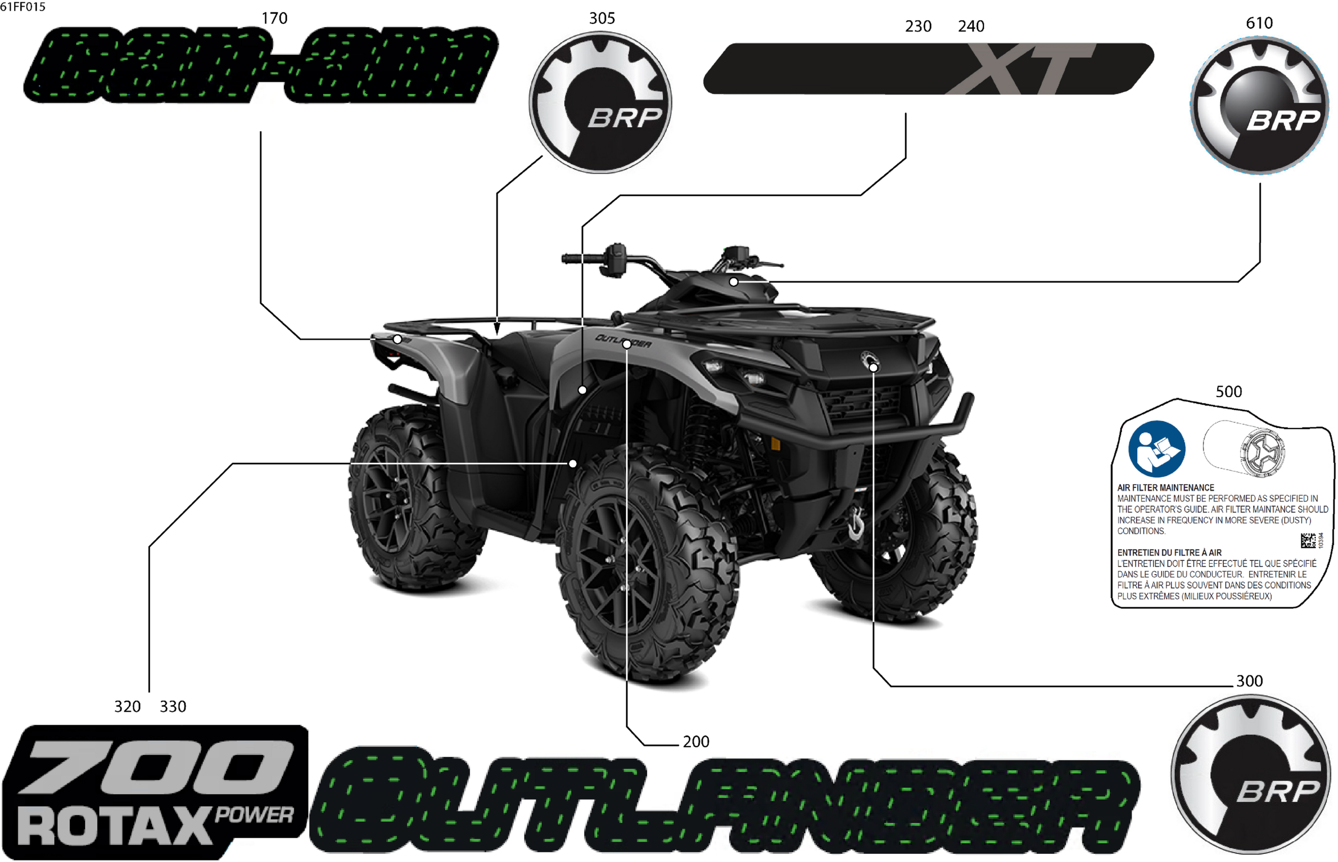 Can-Am OUT-MAX - 4X4 - XT - 700 - 1YTB - CALI - Platinum Silver Satin - 2026 Body - Feature Decals Diagram