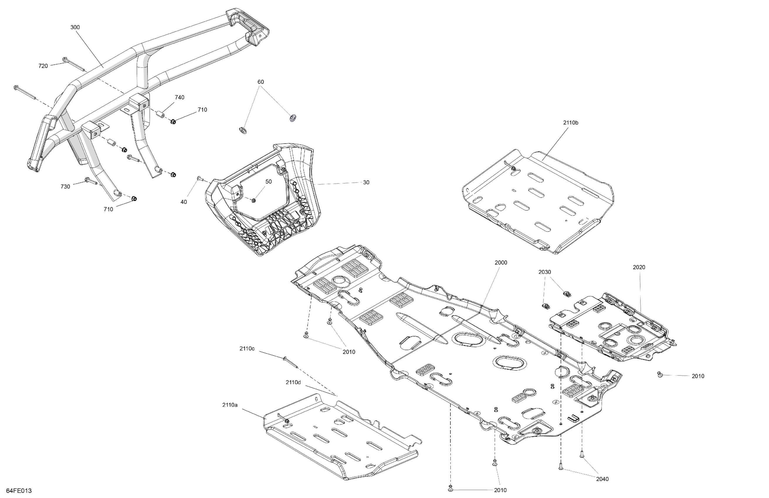 Can-Am OUTL-PRO - 4X4 - HUNT - HD7 - 1PSB - Widland Camo - 2025 Body - Skid Plate and Bumper Diagram