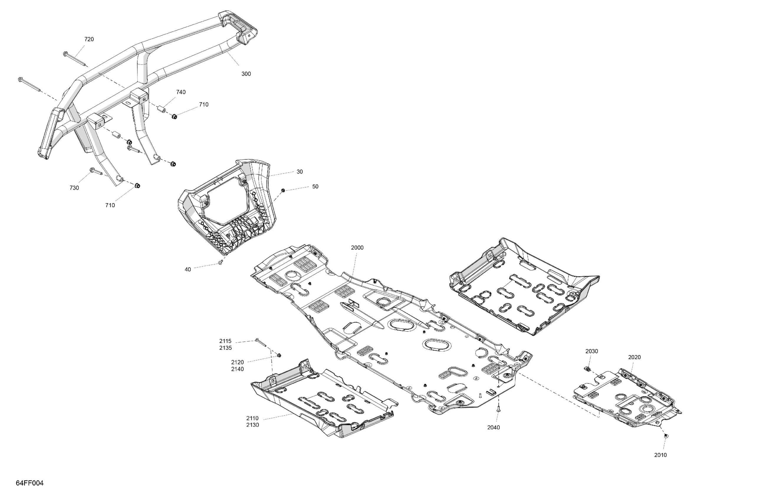 Can-Am Off-Road North America - OUTL-PRO - 4X4 - HUNT - HD7 - 1PTB - CALI - Dark Wildland Camo - 2026 07- Body - Skid Plate and Bumper Diagram