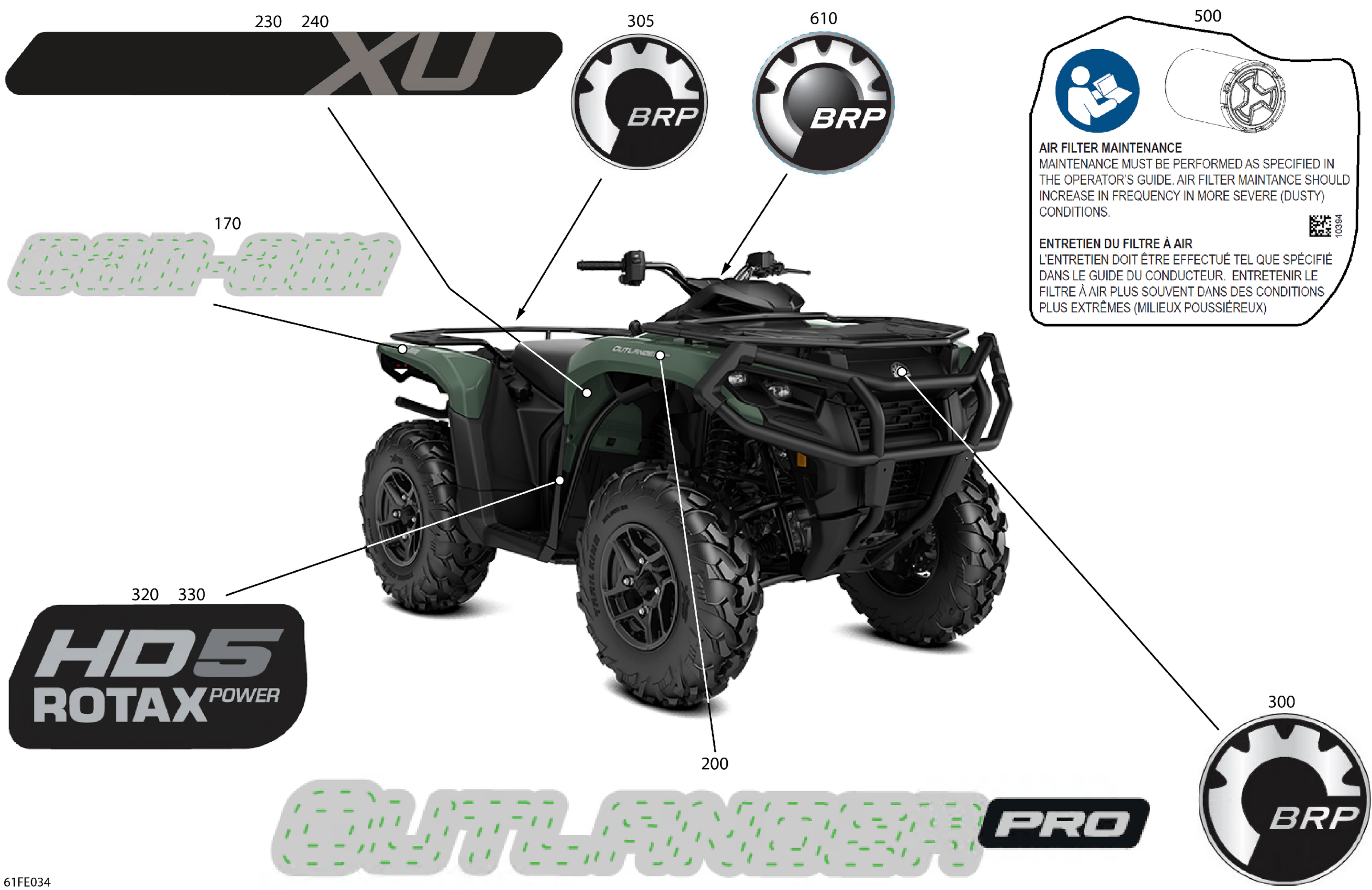 Can-Am OUTL-PRO - 4X4 - XU - HD5 - 1LSG - Compass Green - 2025 Body - Feature Decals Diagram