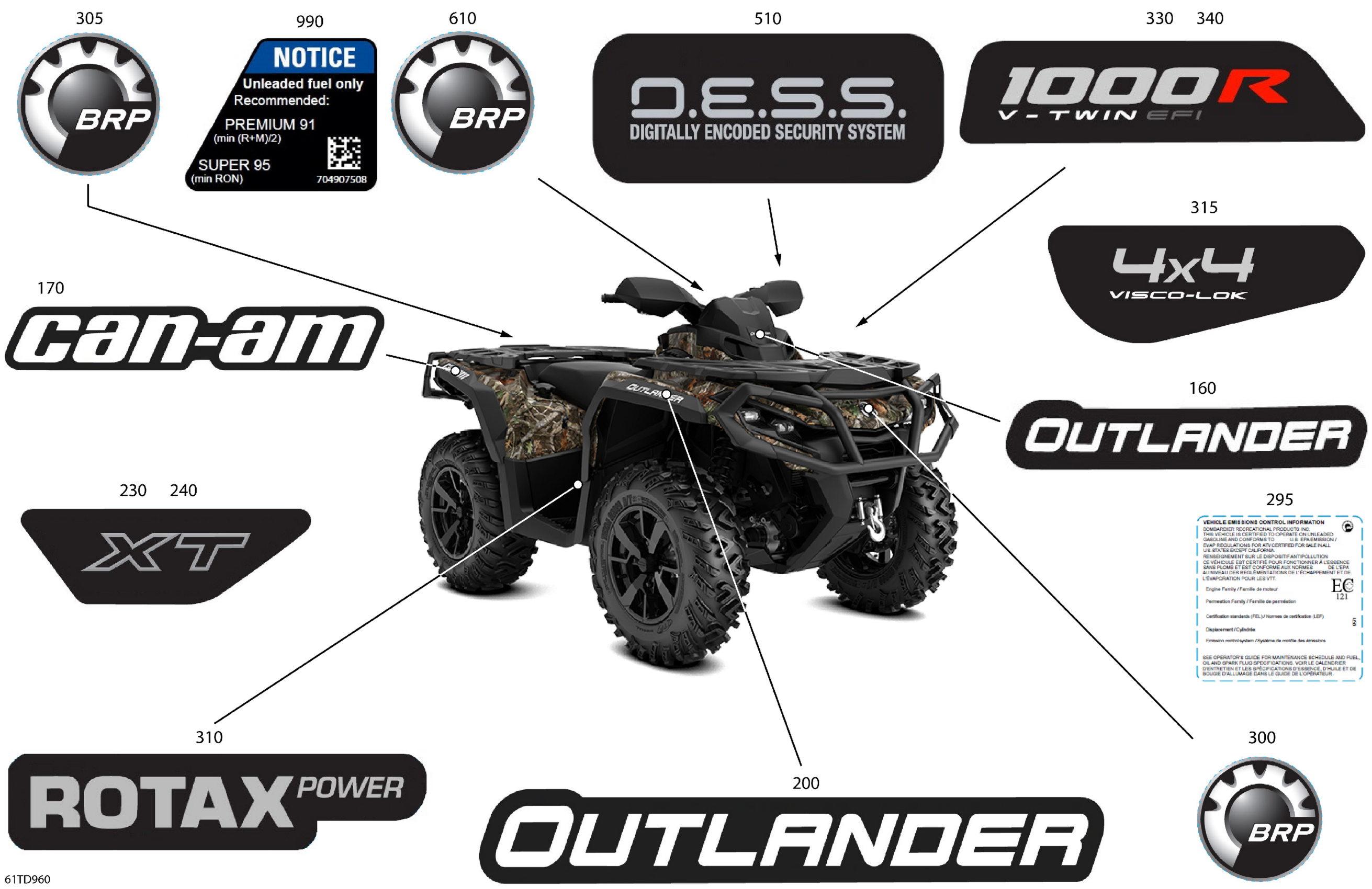 Can-Am Outlander 1000R EFI 4X4 - 5TRF - XT Package - Wildland Camo, 2024 Body - Feature Decals Diagram