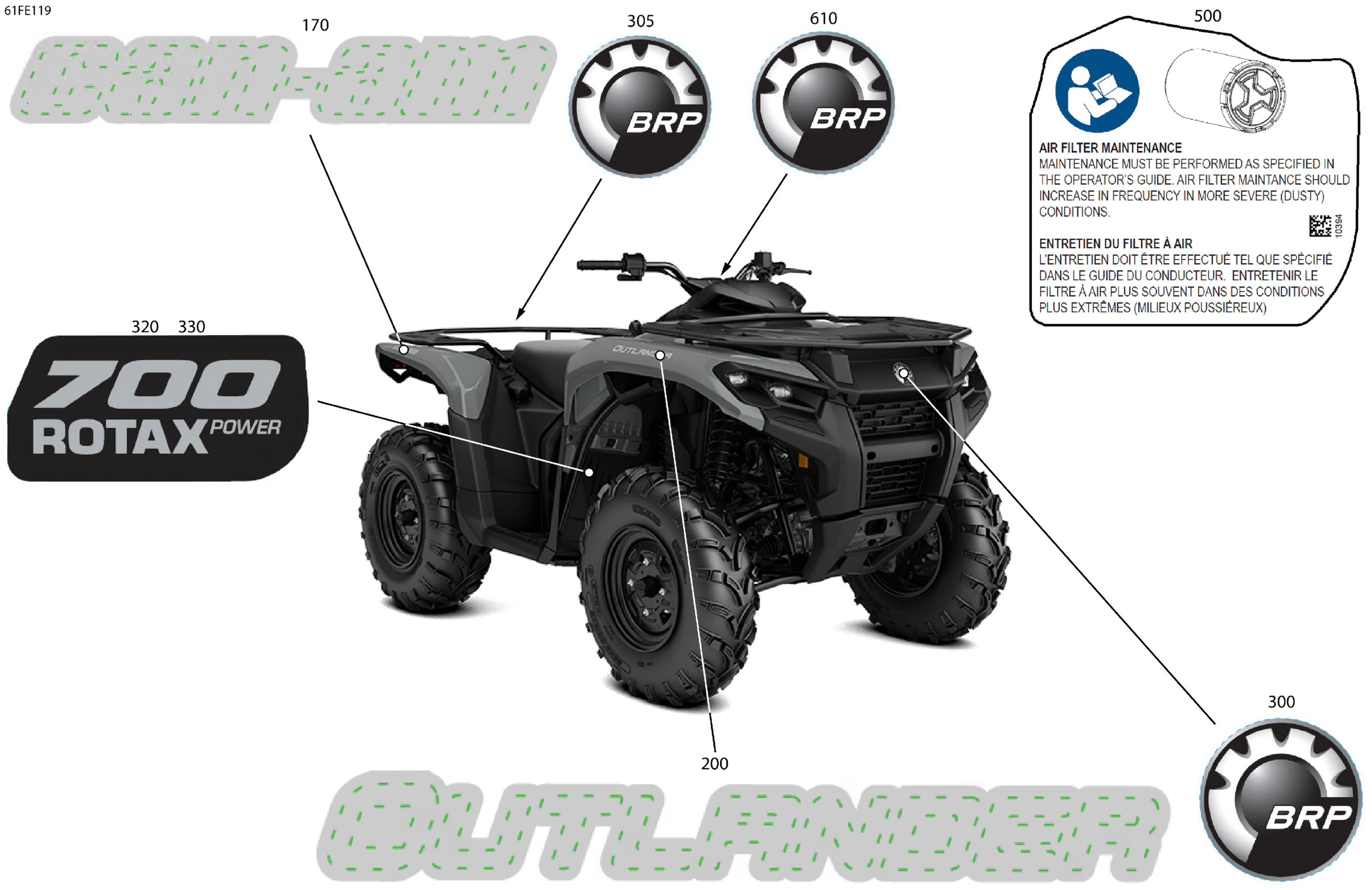 Can-Am OUTLANDER - 4X4 - DPS - 700 - 1ESE - Granite Grey - 2025 Body - Feature Decals Diagram