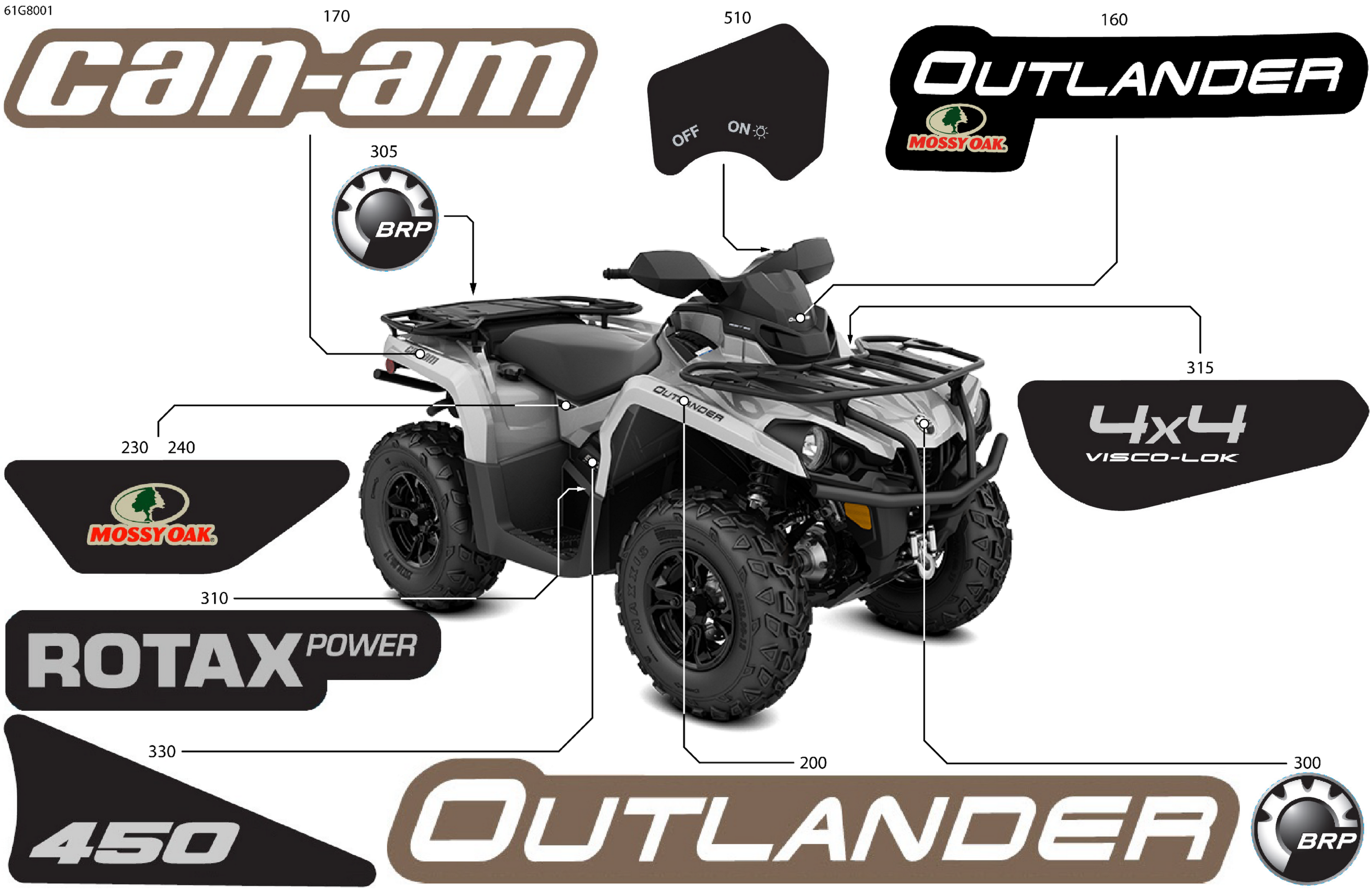 Can-Am OUTLANDER - 4X4 - Mossy Oak Hunting Edition - 450 EFI - 1YJC - Break Up Country - CALI, 2018 Body - Feature Decals Diagram