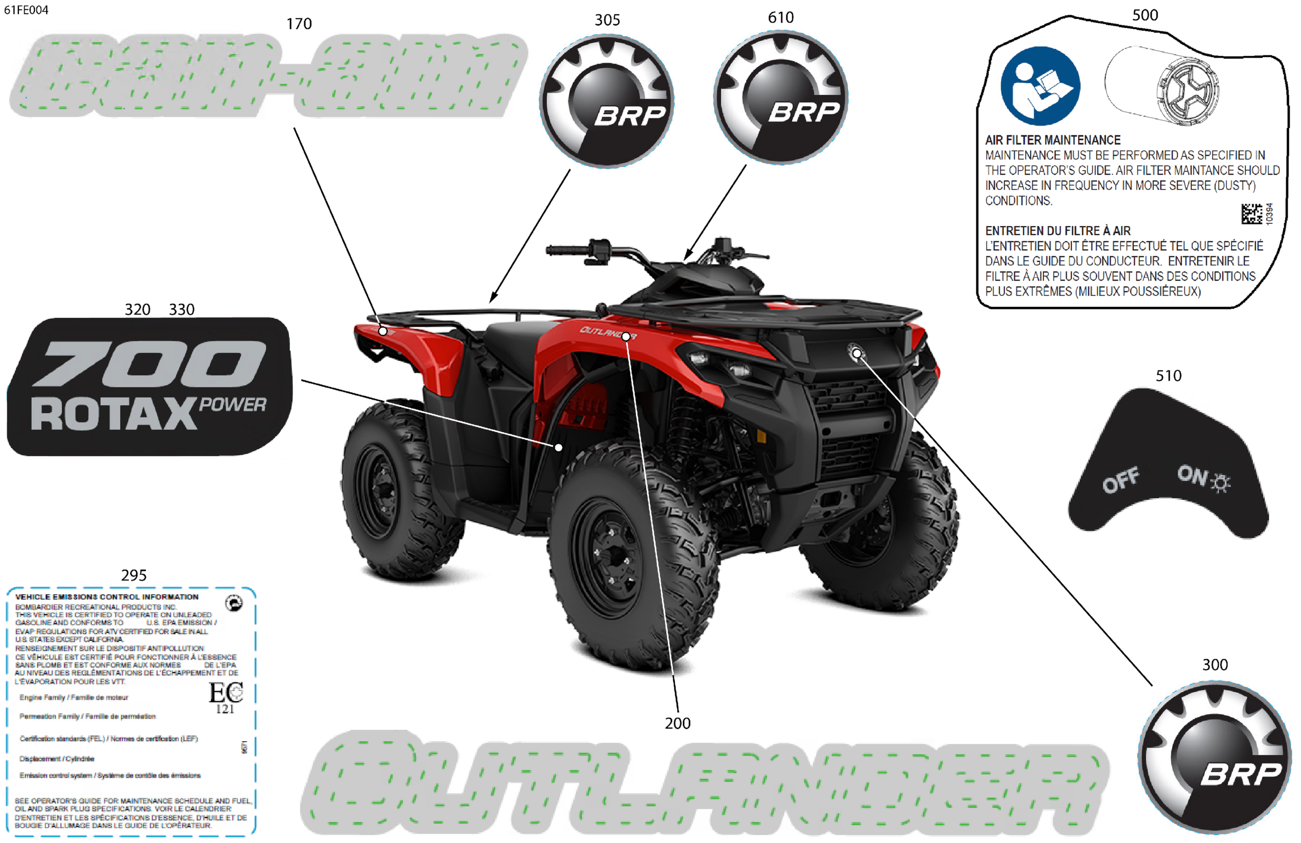 Can-Am OUTLANDER - 4X4 - STD - 700 - 1CSB - Legion Red - 2025 Body - Feature Decals Diagram