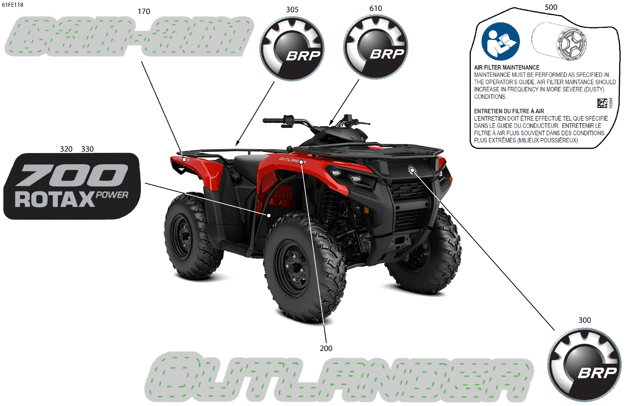Can-Am OUTLANDER - 4X4 - STD - 700 - 1CSD - Legion Red - 2025 Body - Feature Decals Diagram