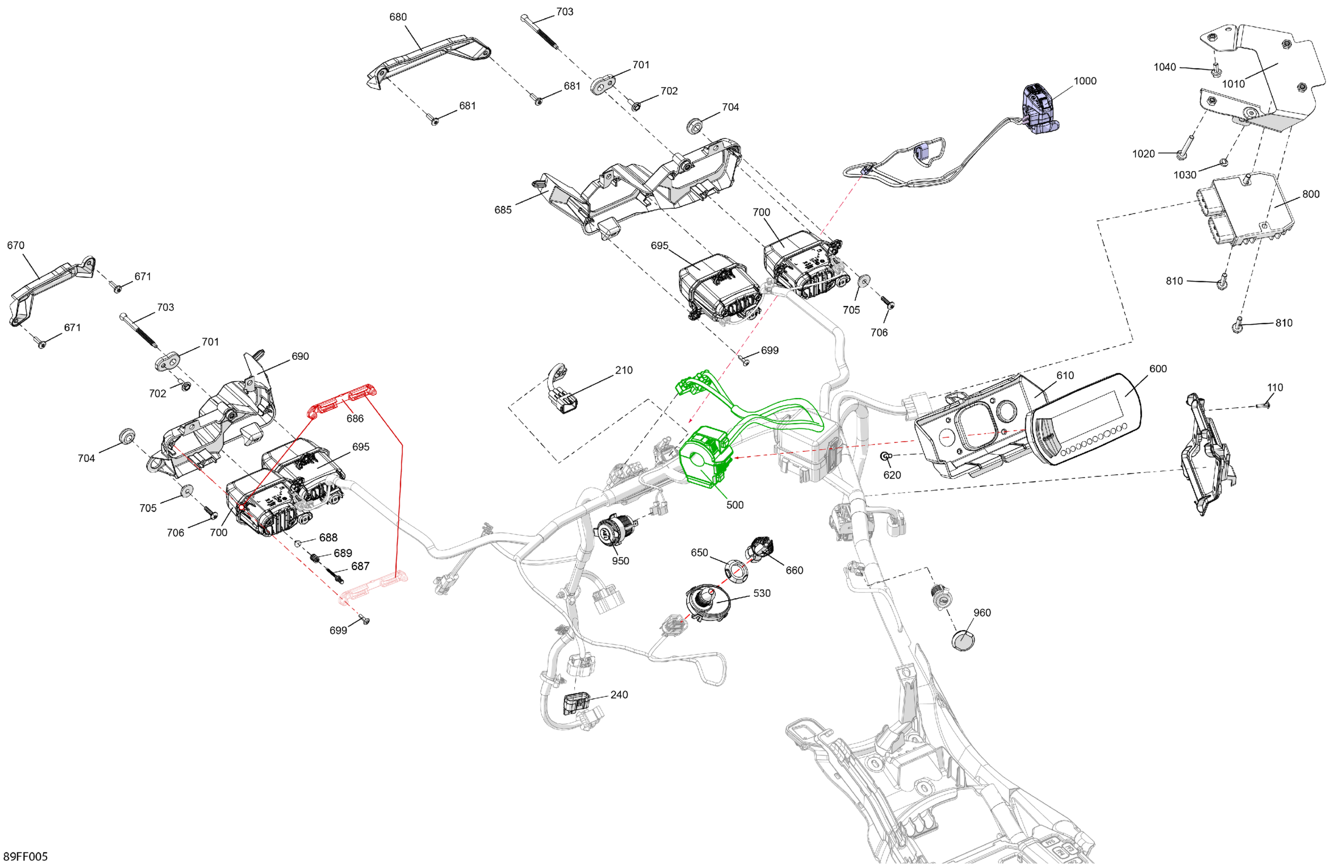 Can-Am OUTLANDER - 4X4 - STD - 700 - 1CTD - CALI - Legion Red - 2026 Electric - Front Section Diagram