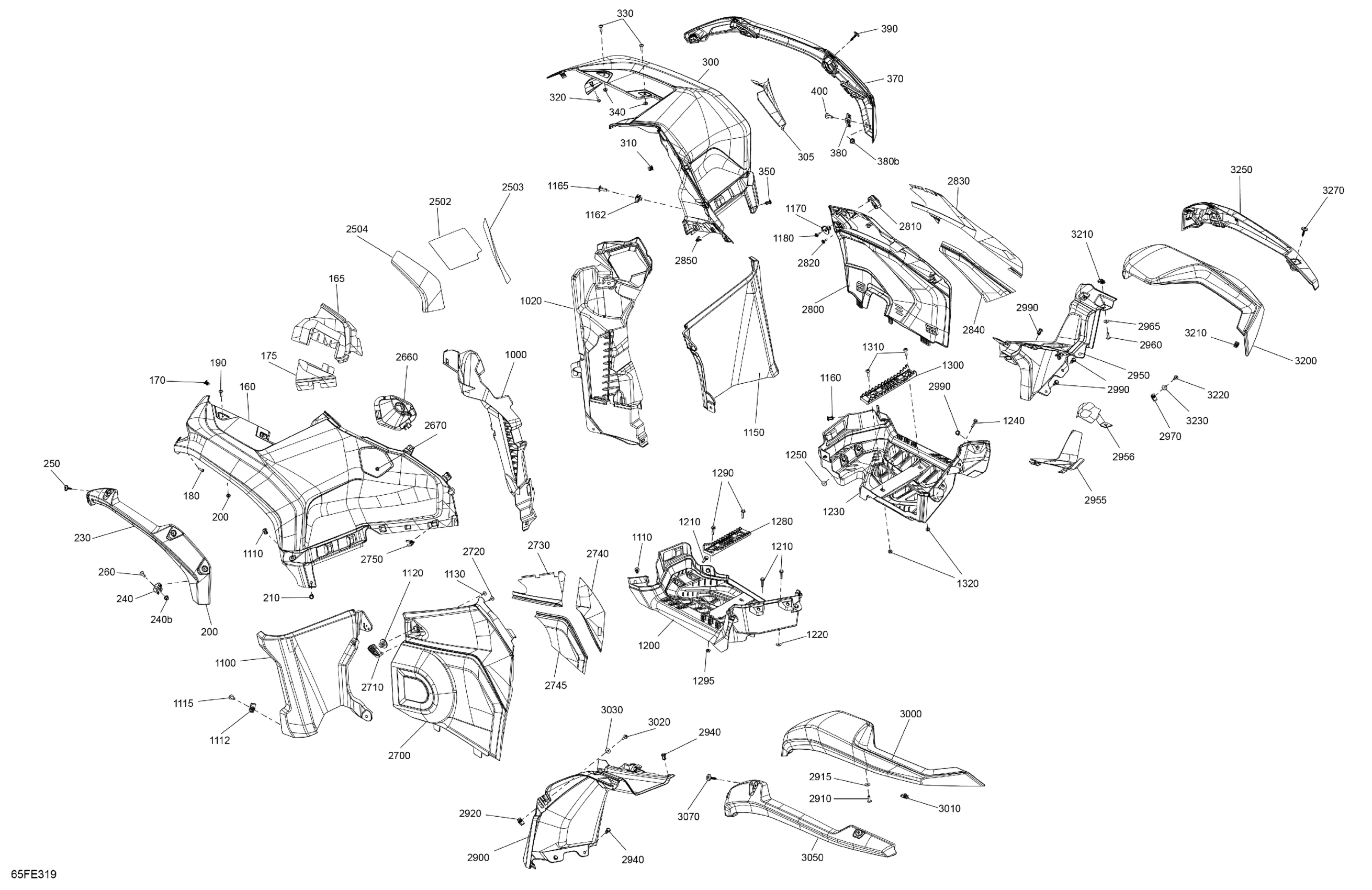 Can-Am OUTLANDER - 4X4 - STD - 850 - 4ASB - Legion Red - 2025 Body - Fender Kit Diagram