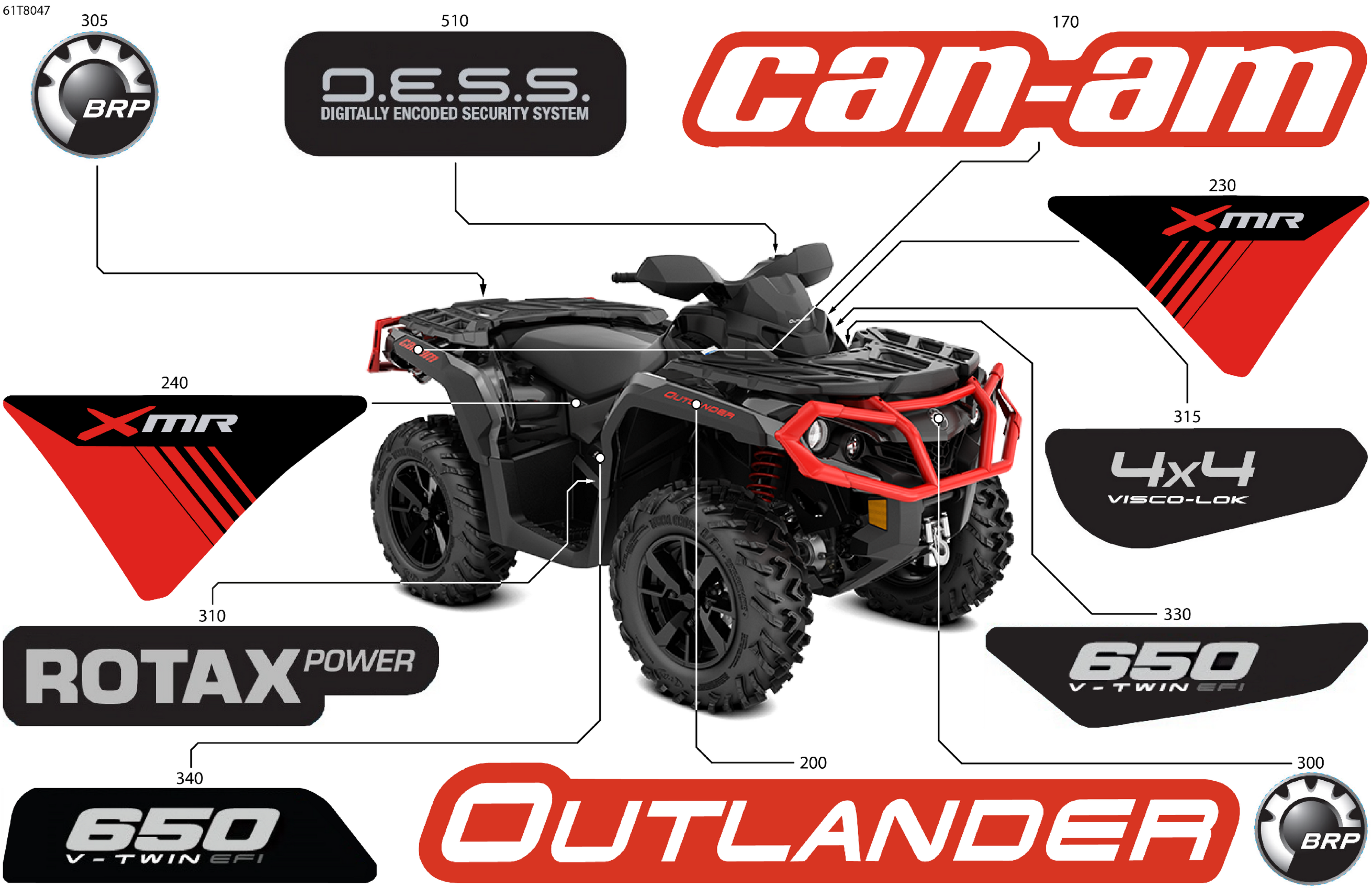 Can-Am OUTLANDER - 4X4 - XMR - 650 EFI - 5EJA - Can-Am Red, 2018 Body - Feature Decals Diagram