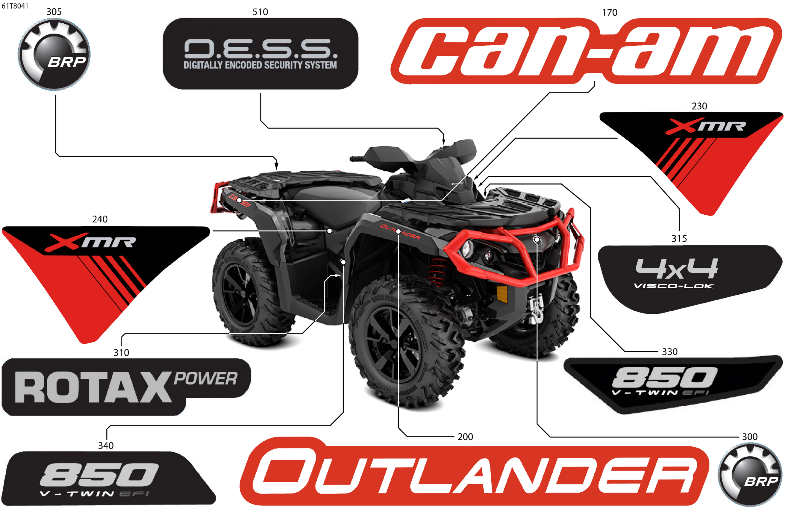 Can-Am OUTLANDER - 4X4 - XMR - 850 EFI - 4KJA - Can-Am Red, 2018 Body - Feature Decals Diagram