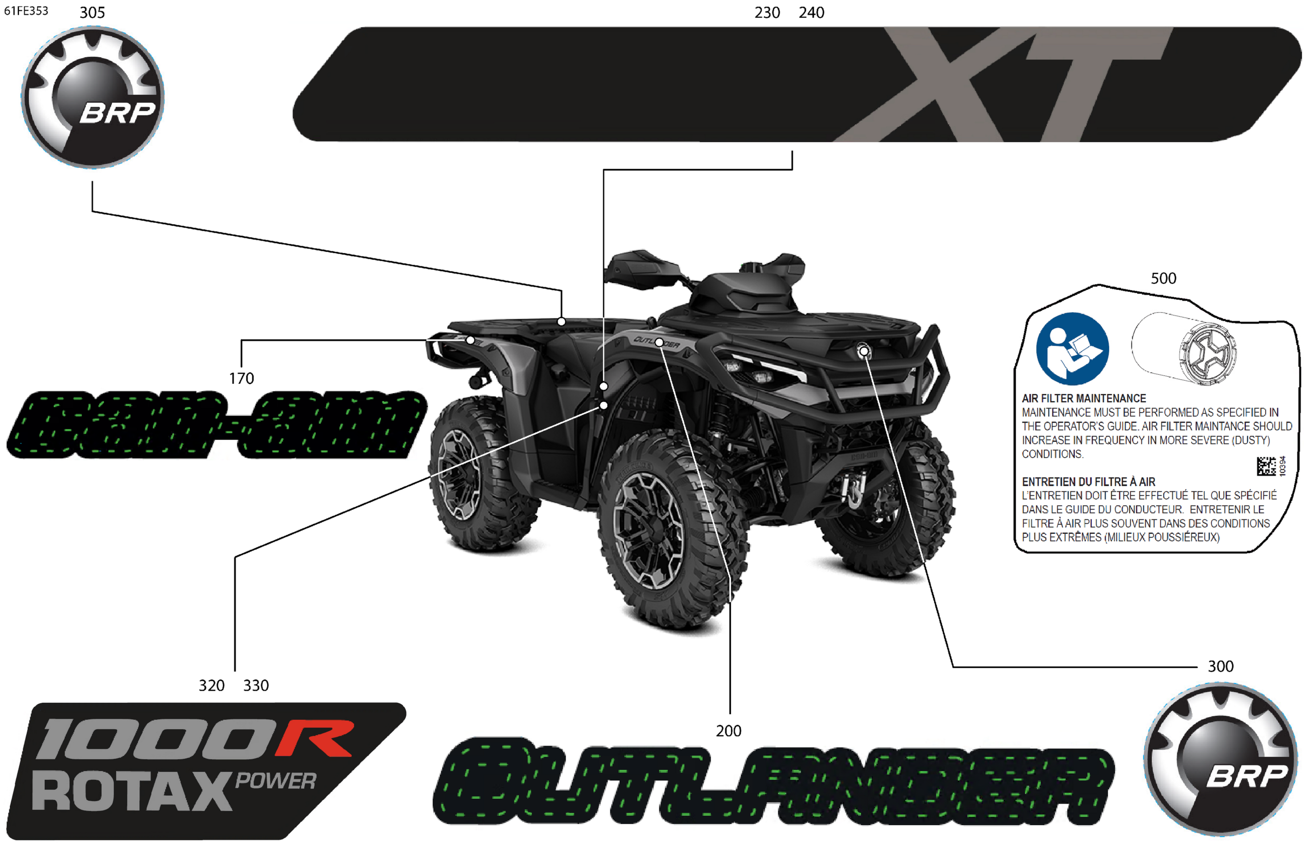 Can-Am OUTLANDER - 4X4 - XT - 1000R - 4FSB - Platinum Silver Satin - 2025 Body - Feature Decals Diagram