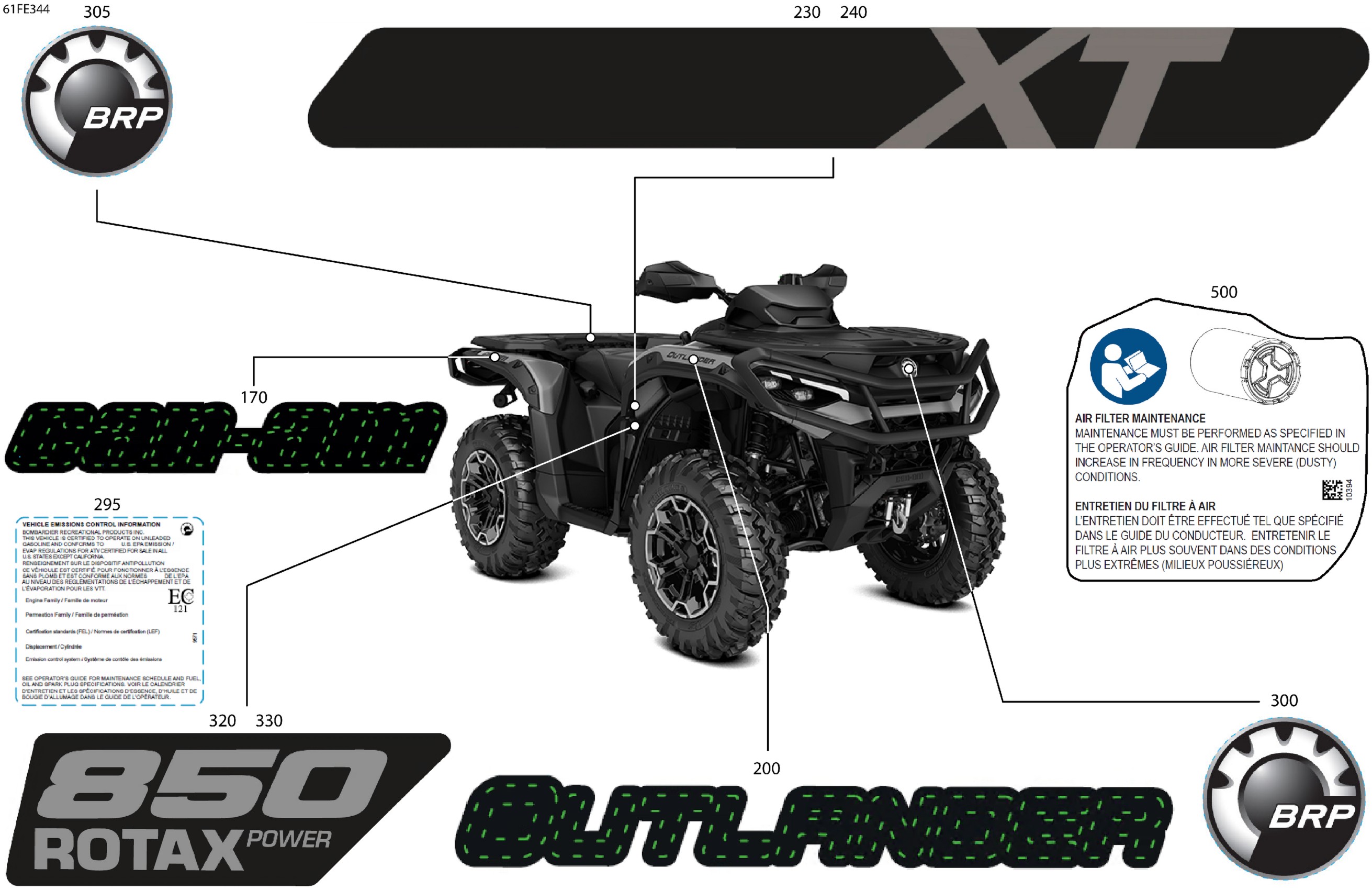 Can-Am North America - OUTLANDER - 4X4 - XT - 850 - 4ESA - Platinum Silver Satin - 2025 07- Body - Feature Decals Diagram