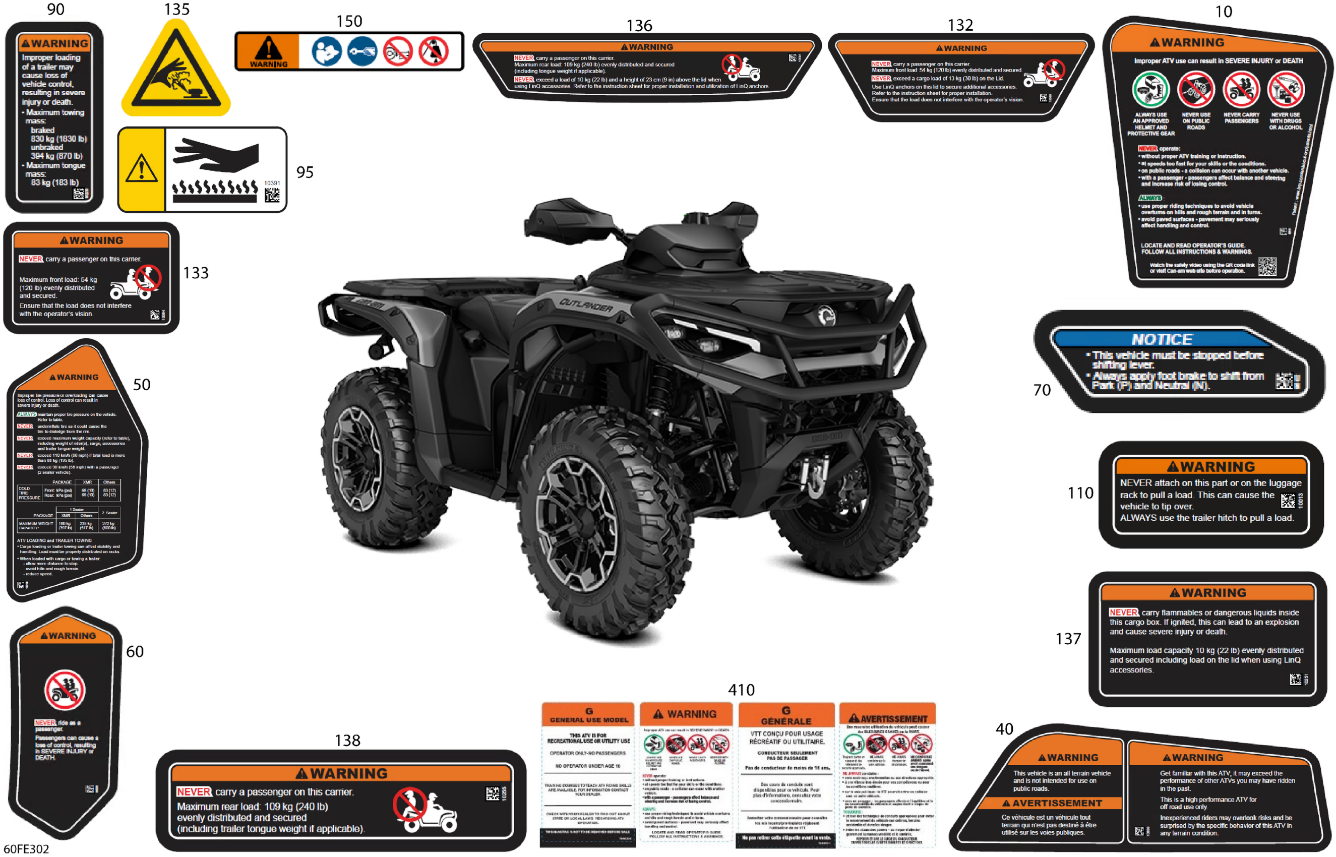 Can-Am OUTLANDER - 4X4 - XT - 850 - 4ESQ - Widland Camo - 2025 Body - Warning Decals Diagram
