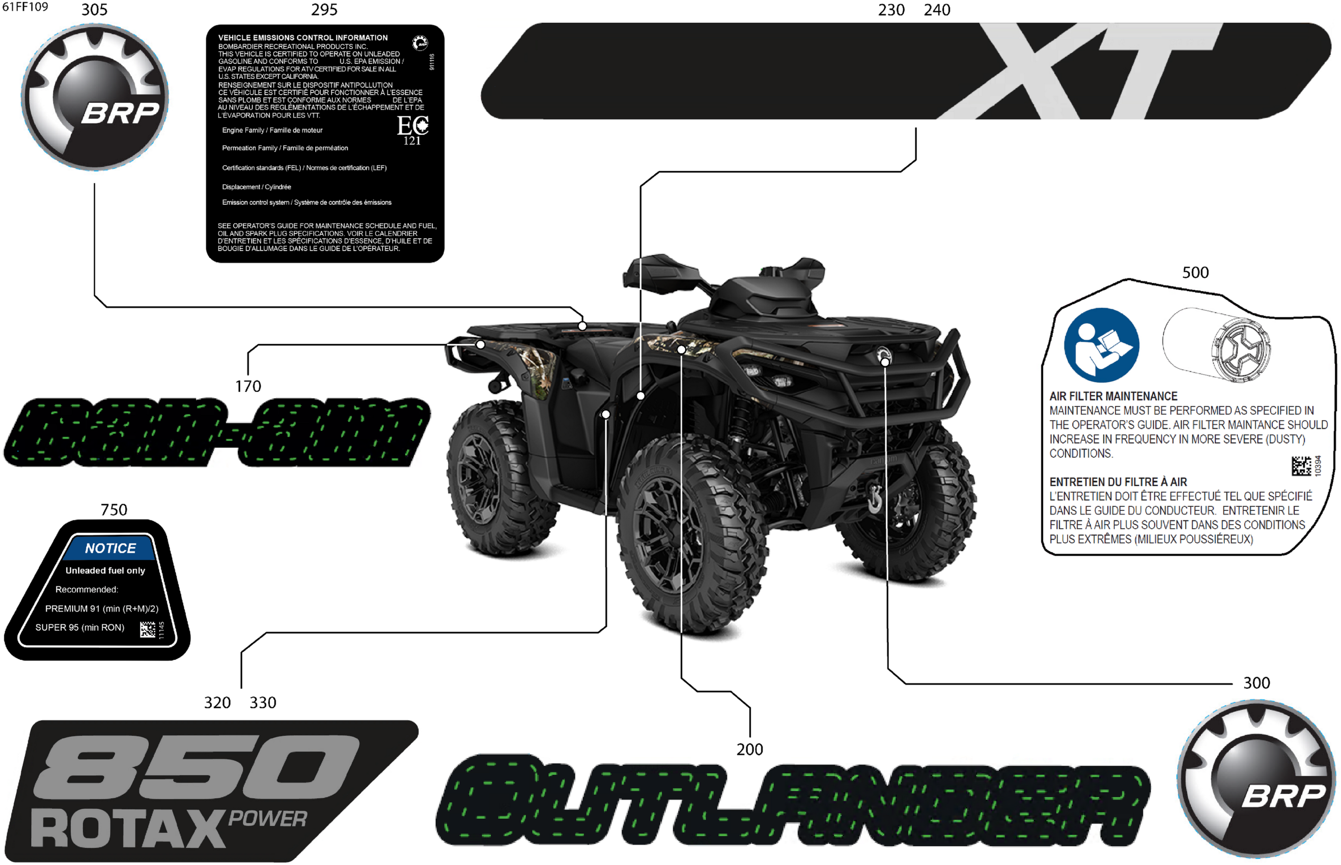 Can-Am Off-Road North America - OUTLANDER - 4X4 - XT - 850 - 4ETF - Compass Green - 2026 07- Body - Feature Decals Diagram