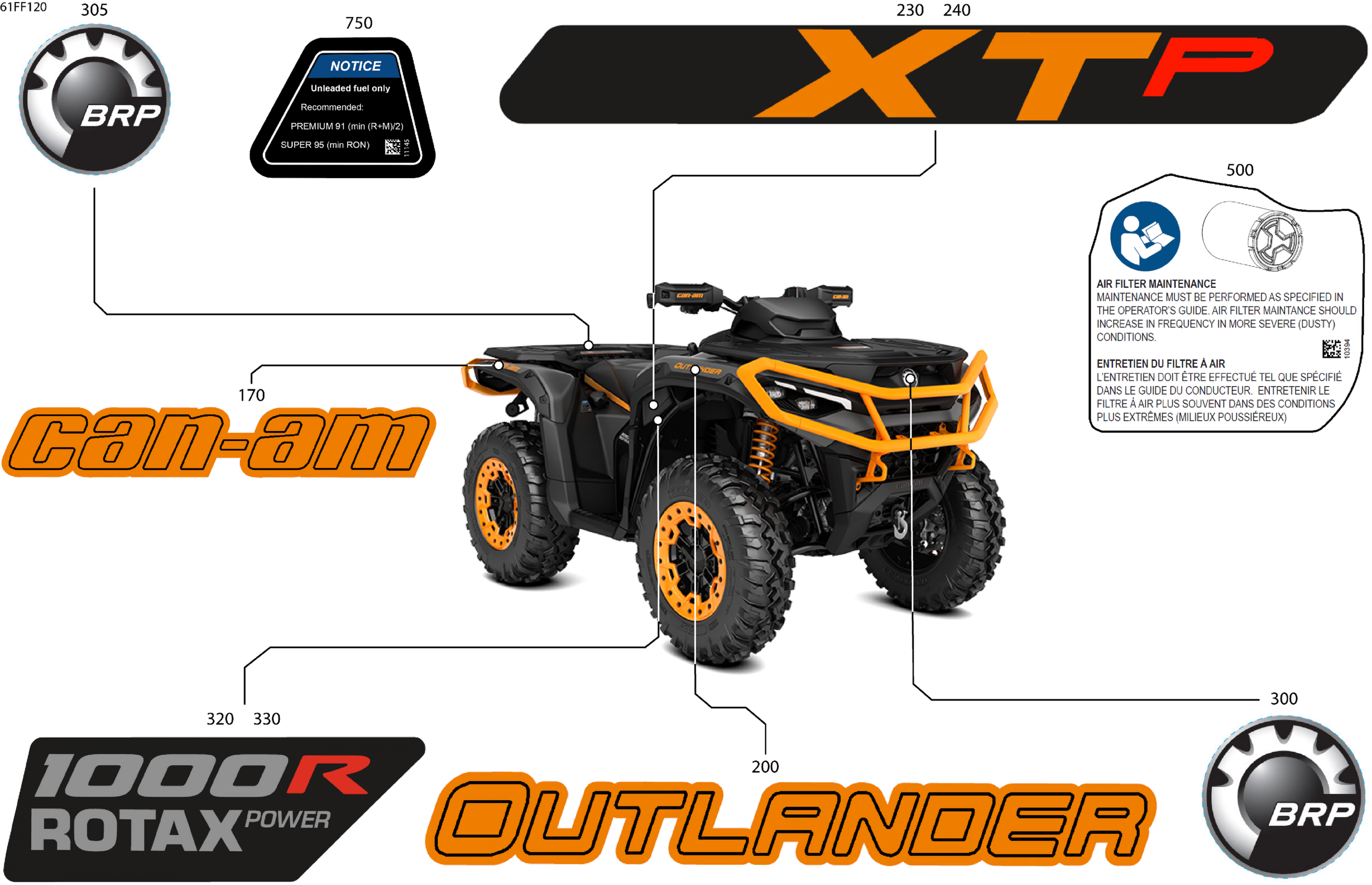 Can-Am Off-Road North America - OUTLANDER - 4X4 - XTP - 1000R - 4HTB - CALI - Mineral Gray Satin - 2026 07- Body - Feature Decals Diagram