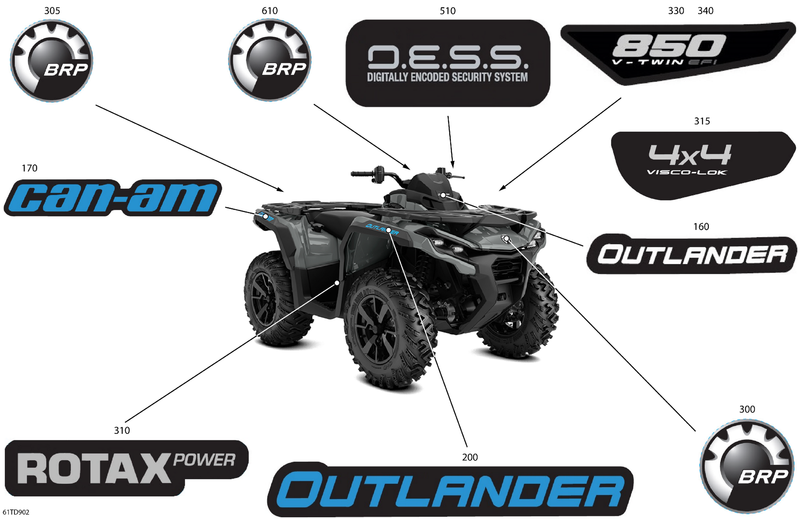 Can-Am Outlander 850 EFI 4X4 - 2ARB - DPS Package - Granite Grey, 2024 Body - Feature Decals Diagram