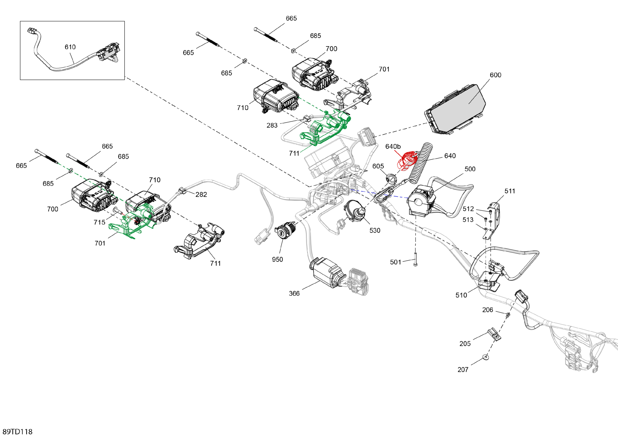 Can-Am Outlander 850 EFI 4X4 - 4KRA - X MR Package - Legion Red, 2024 Electric - Front Section Diagram