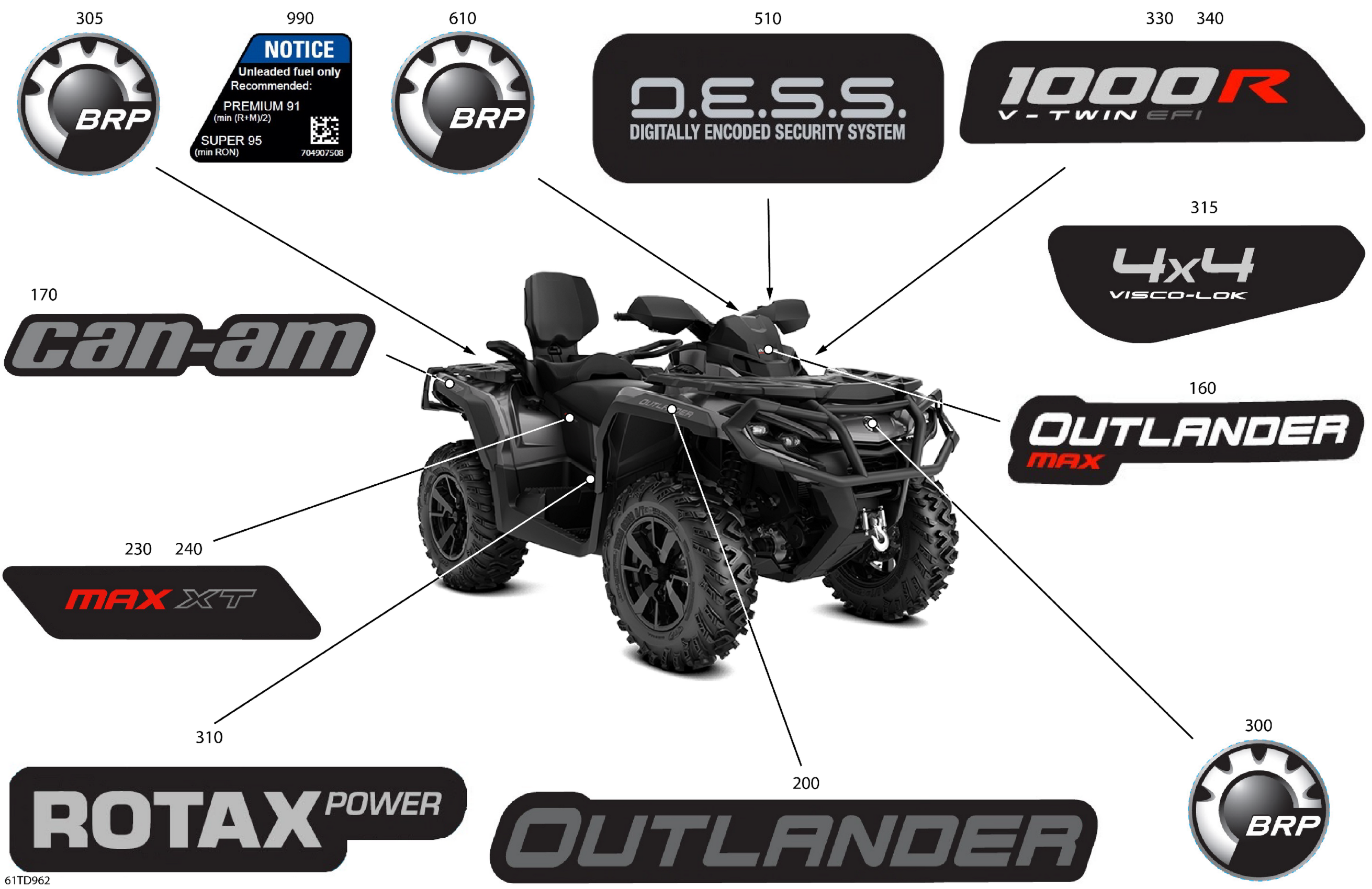 Can-Am Outlander MAX 1000R EFI 4X4 - 5URB - XT Package - Fiery Red Metallic, 2024 Body - Feature Decals Diagram