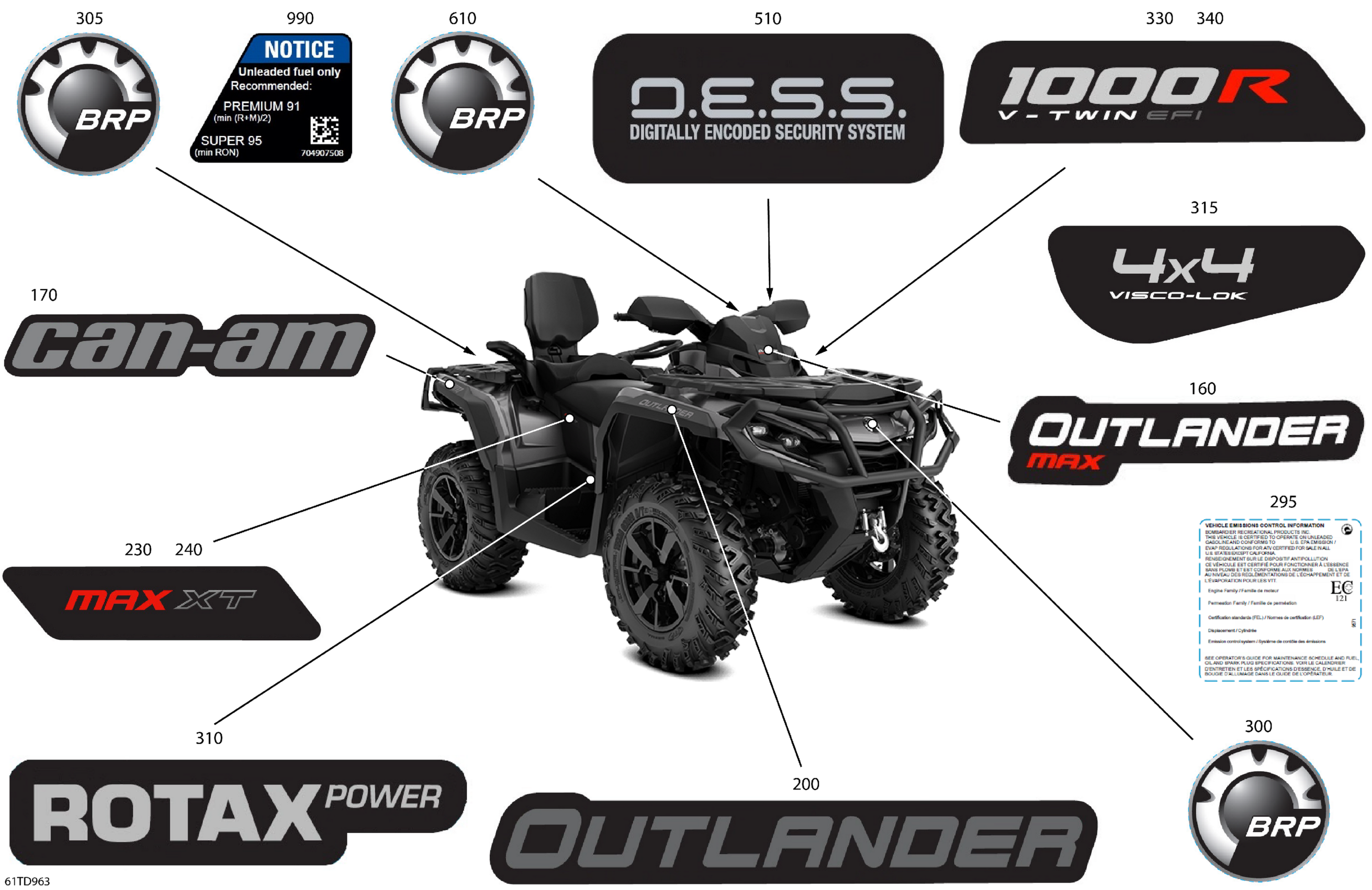 Can-Am Outlander MAX 1000R EFI 4X4 - 5URD - XT Package - Fiery Red Metallic, 2024 Body - Feature Decals Diagram