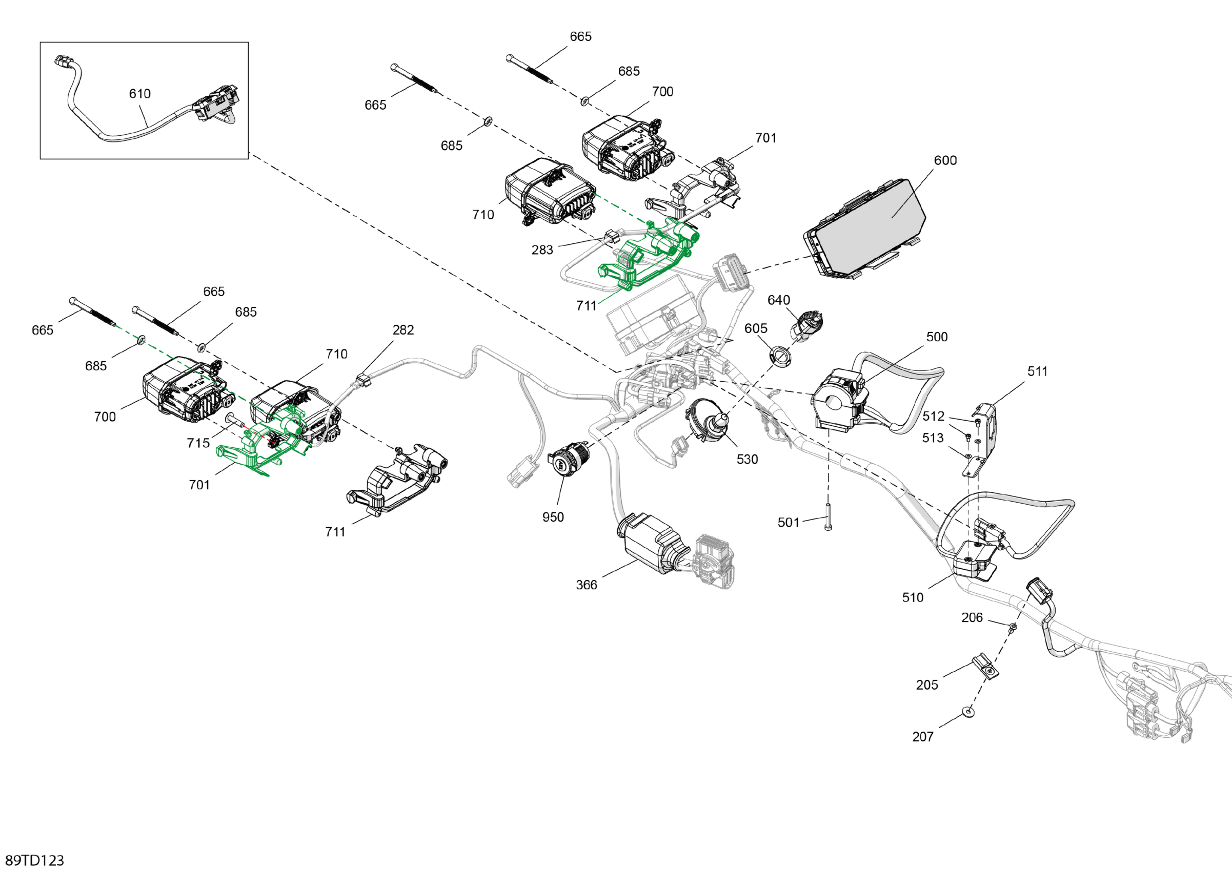 Can-Am Outlander MAX 1000R EFI 4X4 - 5WRB - Limited Package - Asphalt Grey, 2024 Electric - Front Section Diagram