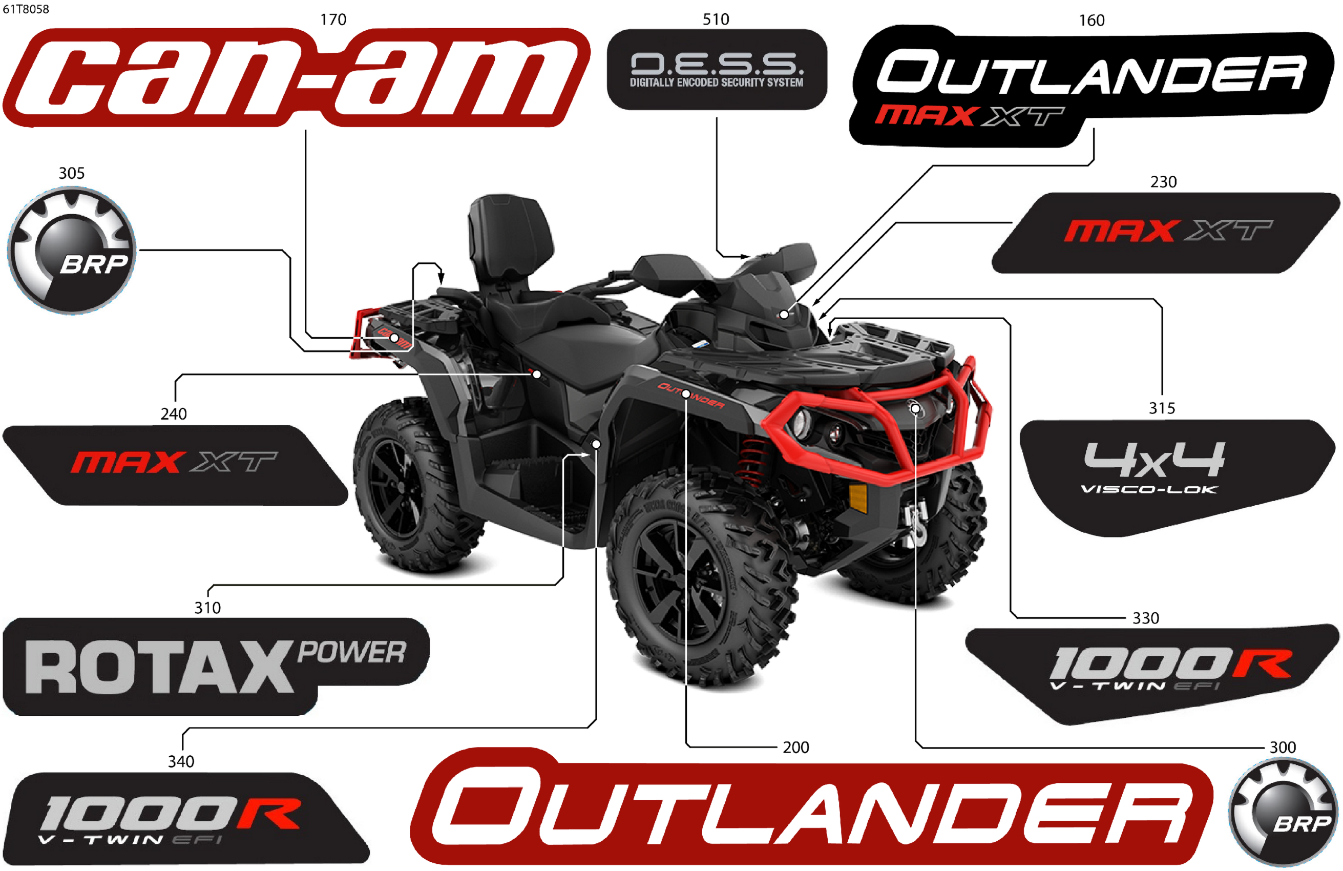Can-Am OUTLANDER MAX - 4X4 - XT - 1000R - 5UJD - Intense Red Satin - CALI, 2018 Body - Feature Decals Diagram