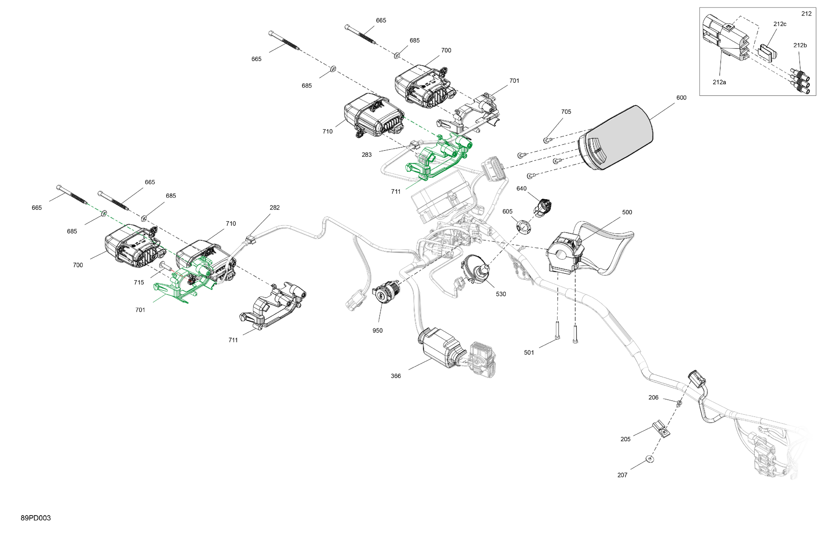 Can-Am Outlander MAX 650 EFI 6X6 - 5YRA - DPS Package - Tundra Green, 2024 Electric - Front Section Diagram
