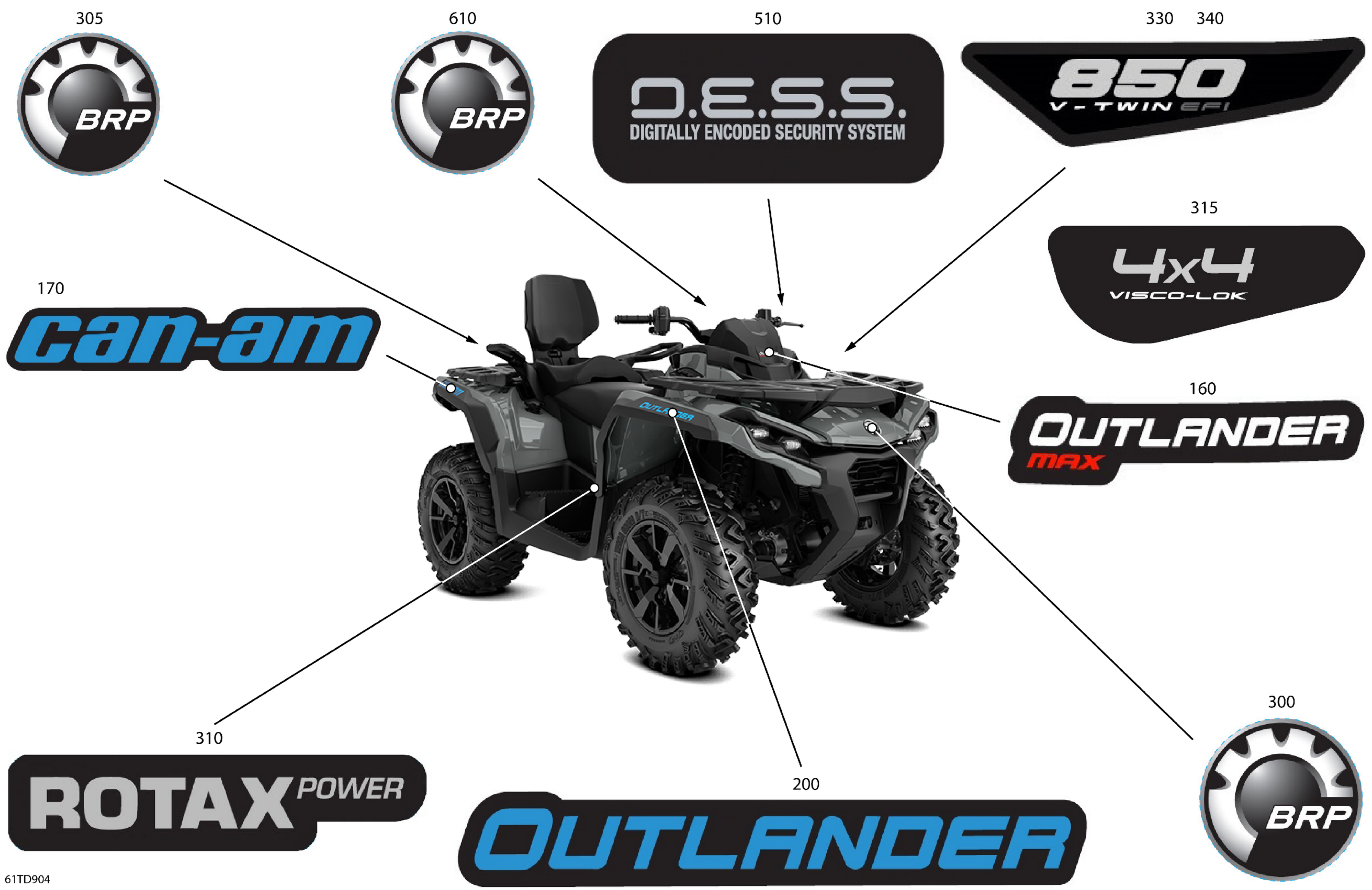 Can-Am Outlander MAX 850 EFI 4X4 - 2DRB - DPS Package - Granite Grey, 2024 Body - Feature Decals Diagram