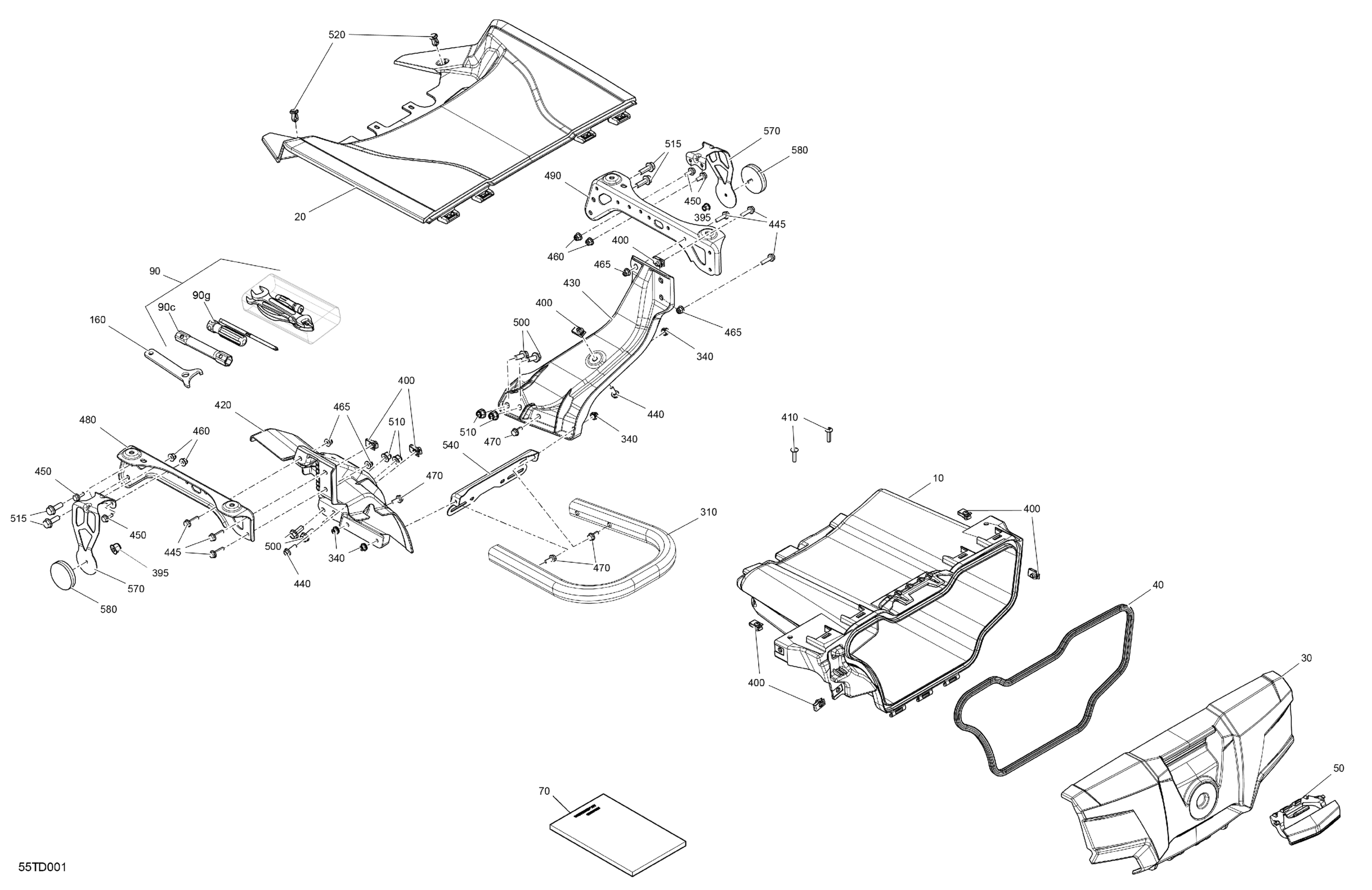Can-Am Outlander MAX 850 EFI 4X4 - 2DRB - DPS Package - Granite Grey, 2024 Body - Front Storage Tray Diagram