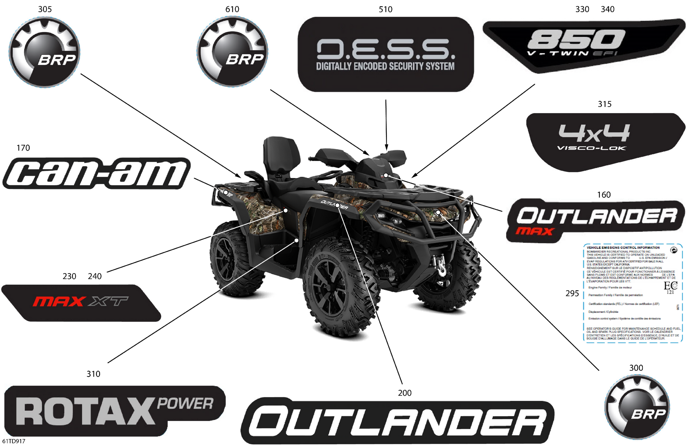 Can-Am Outlander MAX 850 EFI 4X4 - 2LRF - XT Package - Wildland Camo, 2024 Body - Feature Decals Diagram