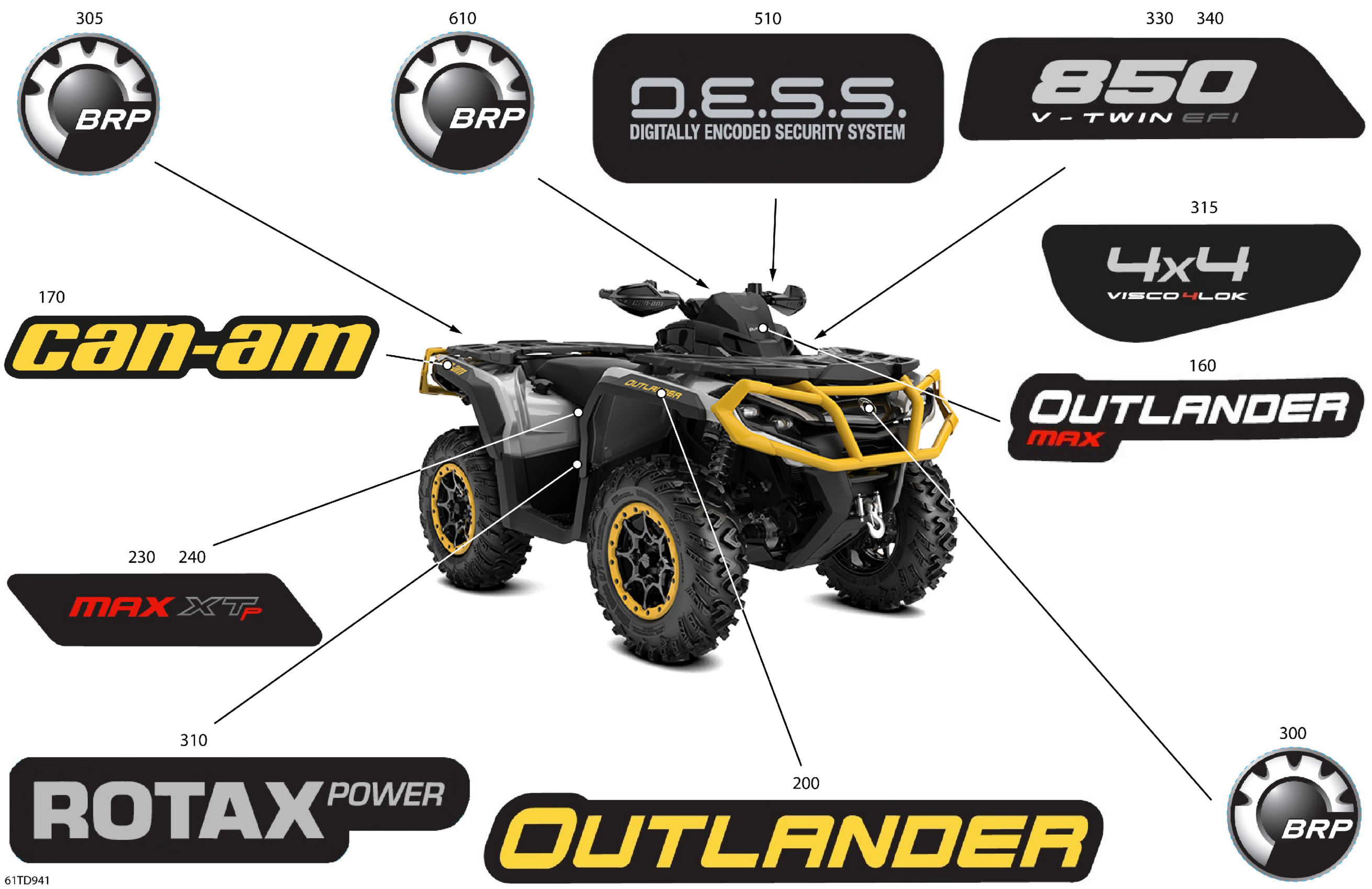 Can-Am Outlander MAX 850 EFI 4X4 - 5FRA - XT-P Package - Hyper Silver, 2024 Body - Feature Decals Diagram