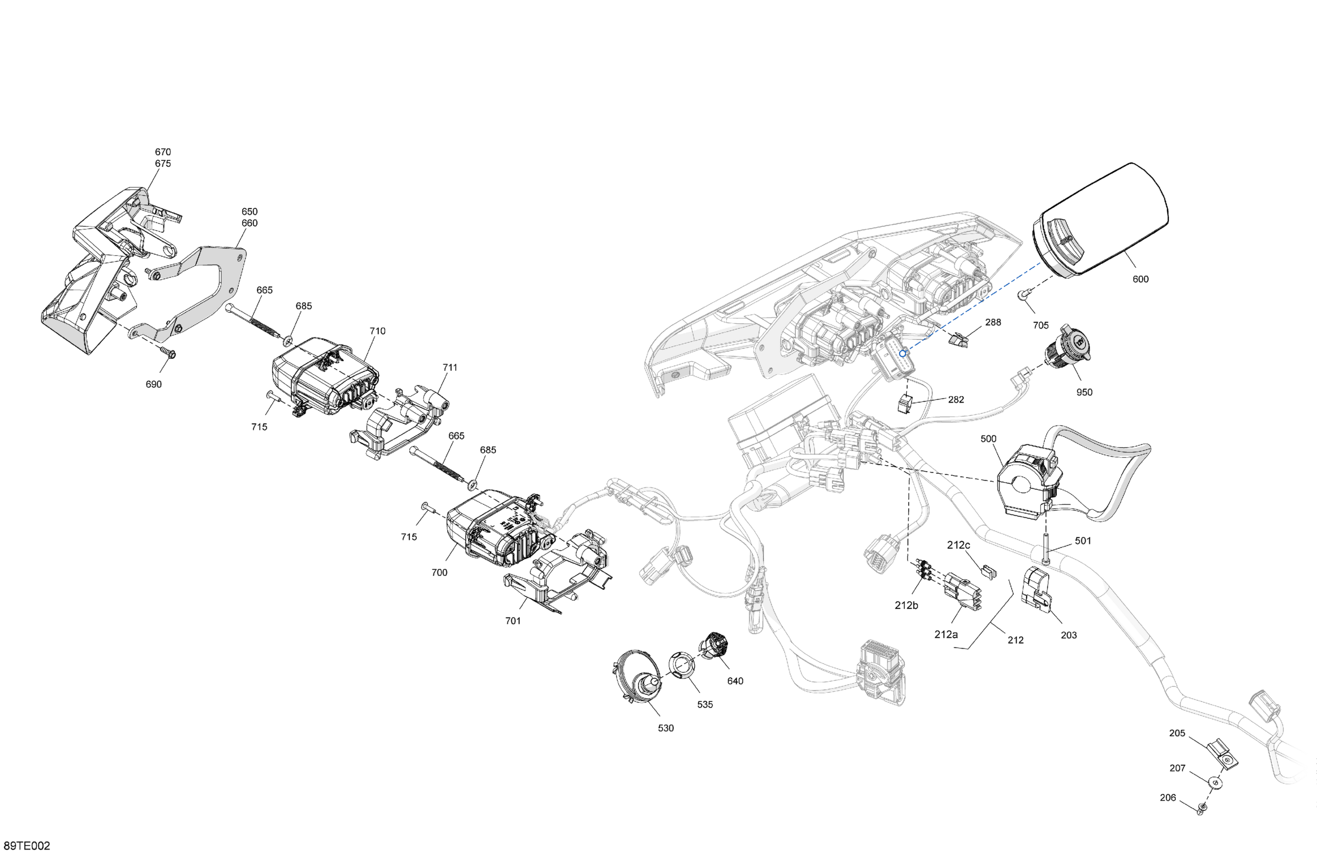 Can-Am RENEGADE - 4X4 - STD - 650 EFI - 5PSB - Catalyst Gray - 2025 Electric - Front Section Diagram