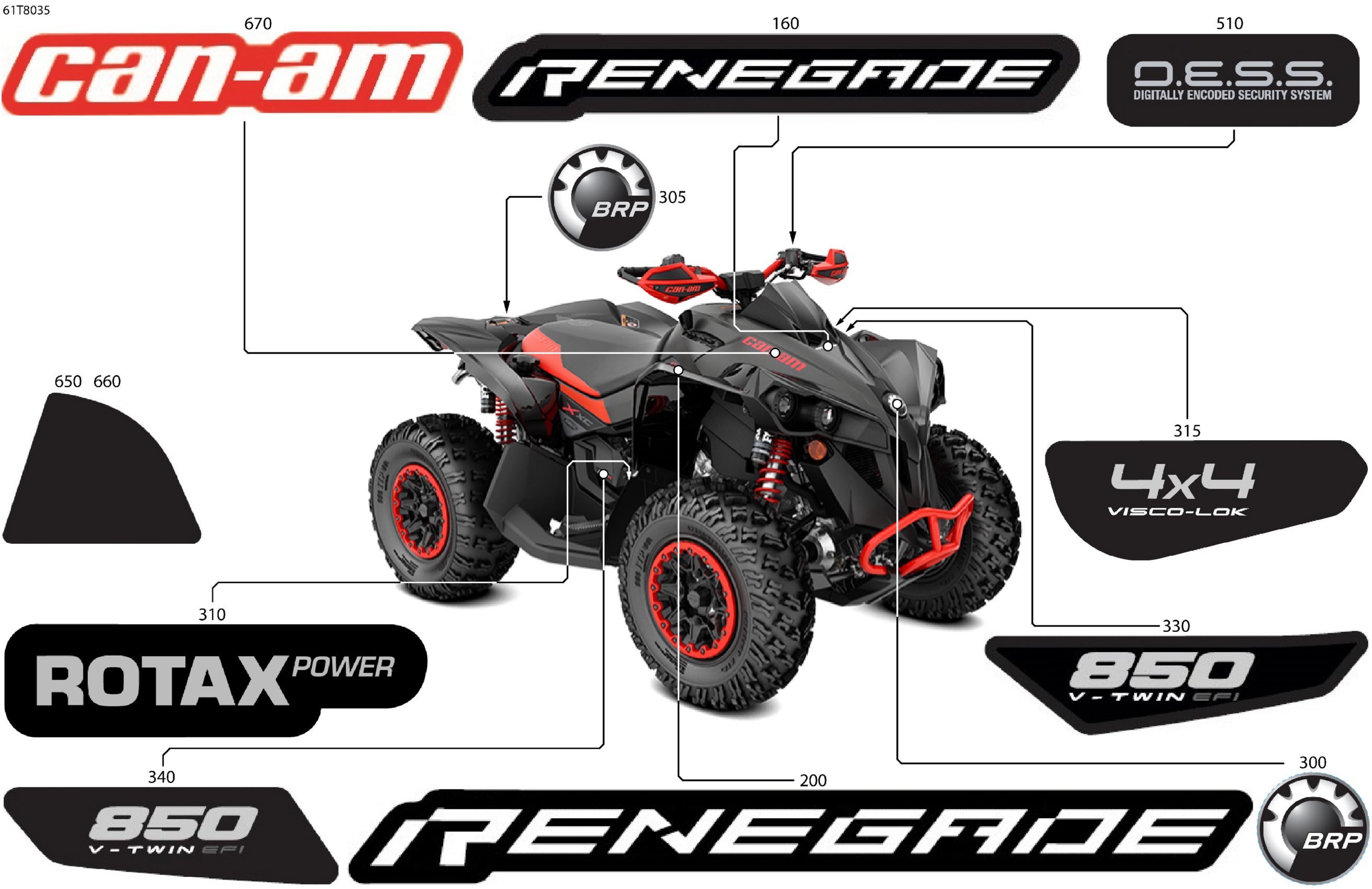Can-Am RENEGADE - 4X4 - STD - 850 EFI - 4BJB - Can-Am Red - CALI, 2018 Body - Feature Decals Diagram