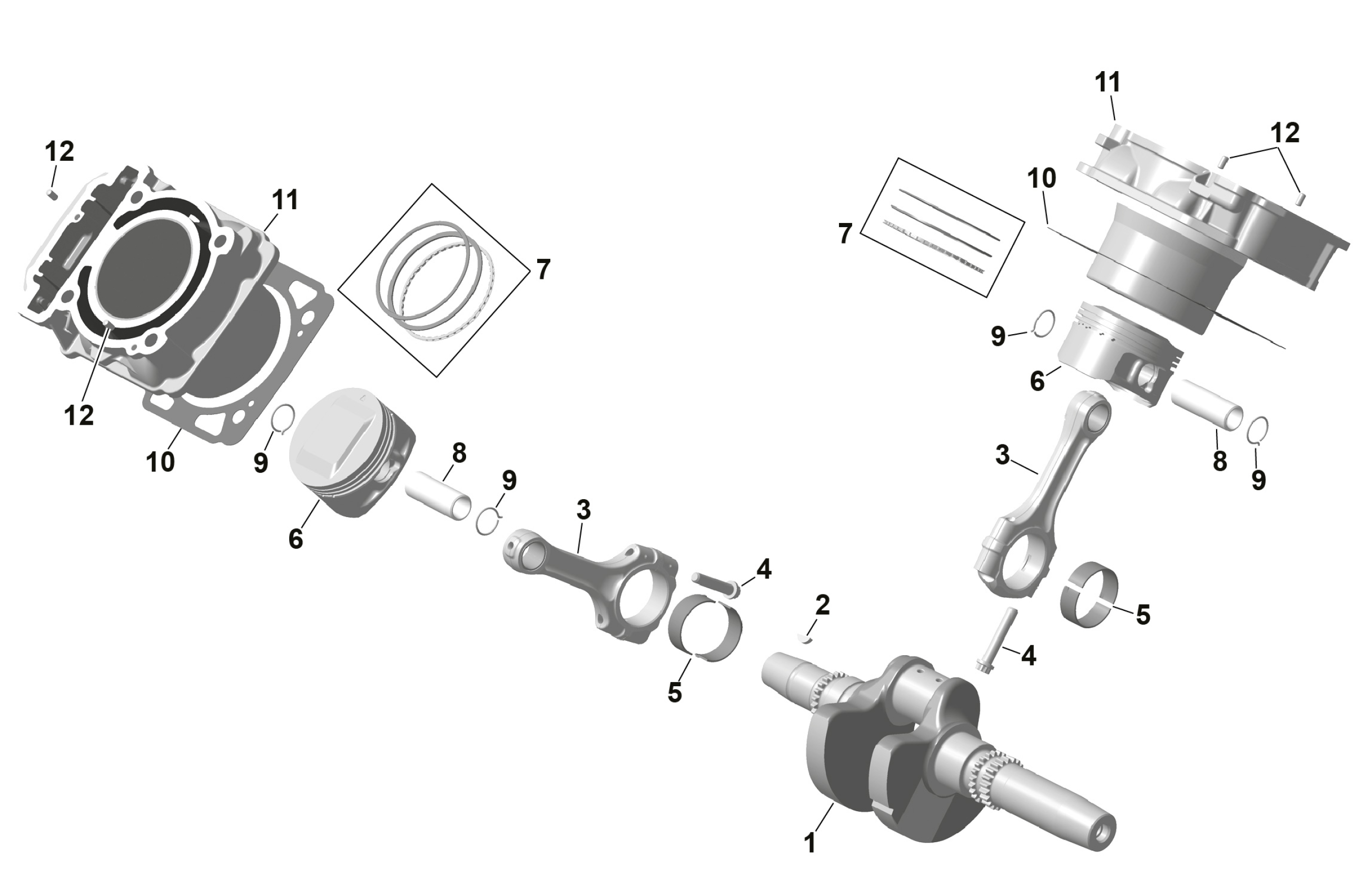 Can-Am RENEGADE - 4X4 - XMR - 650 EFI - 5TTA - Catalyst Gray - 2026 ROTAX - Crankshaft, Pistons and Cylinder Diagram