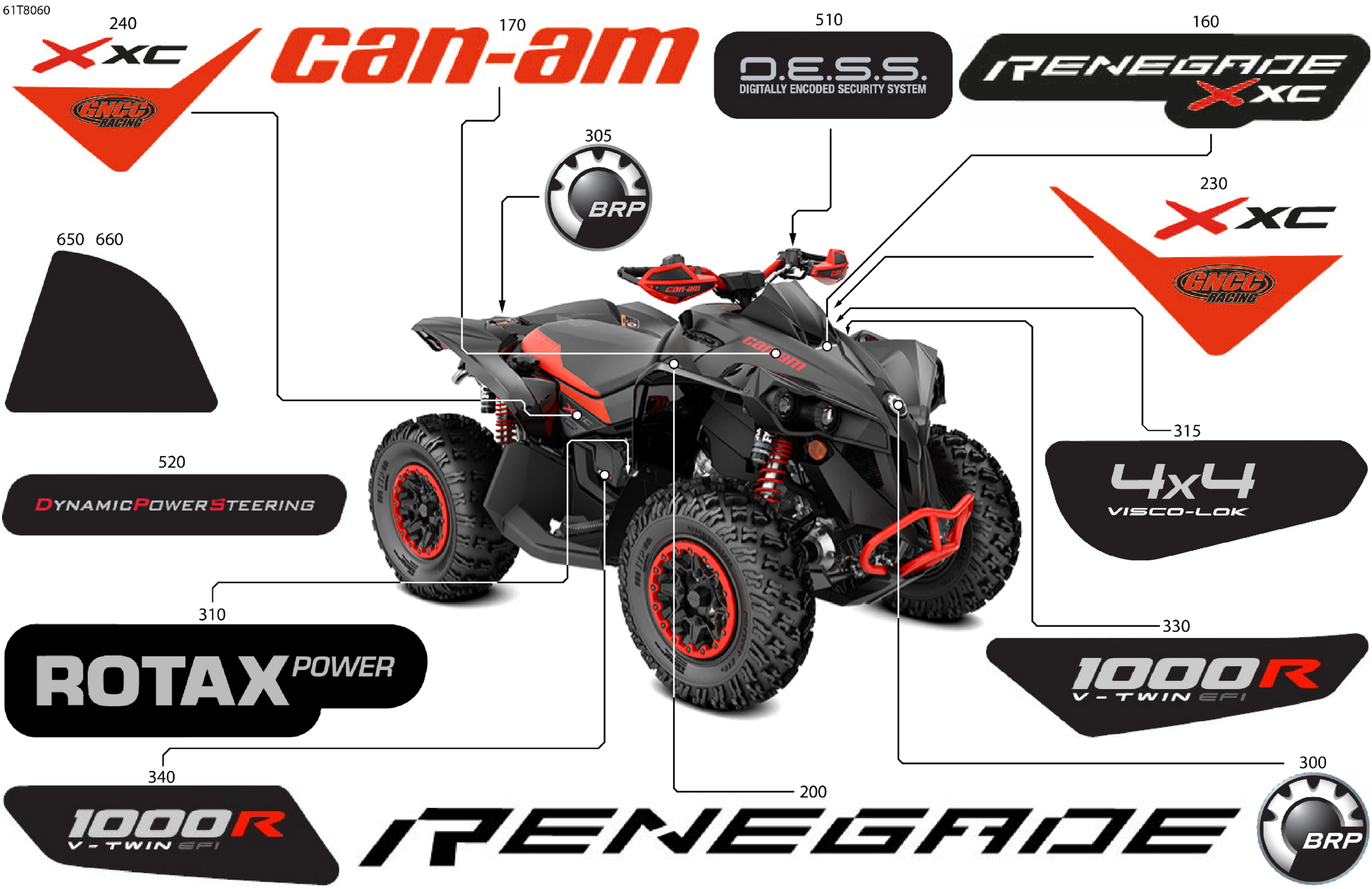 Can-Am RENEGADE - 4X4 - XXC - 1000R - 5VJA - Can-Am Red, 2018 Body - Feature Decals Diagram