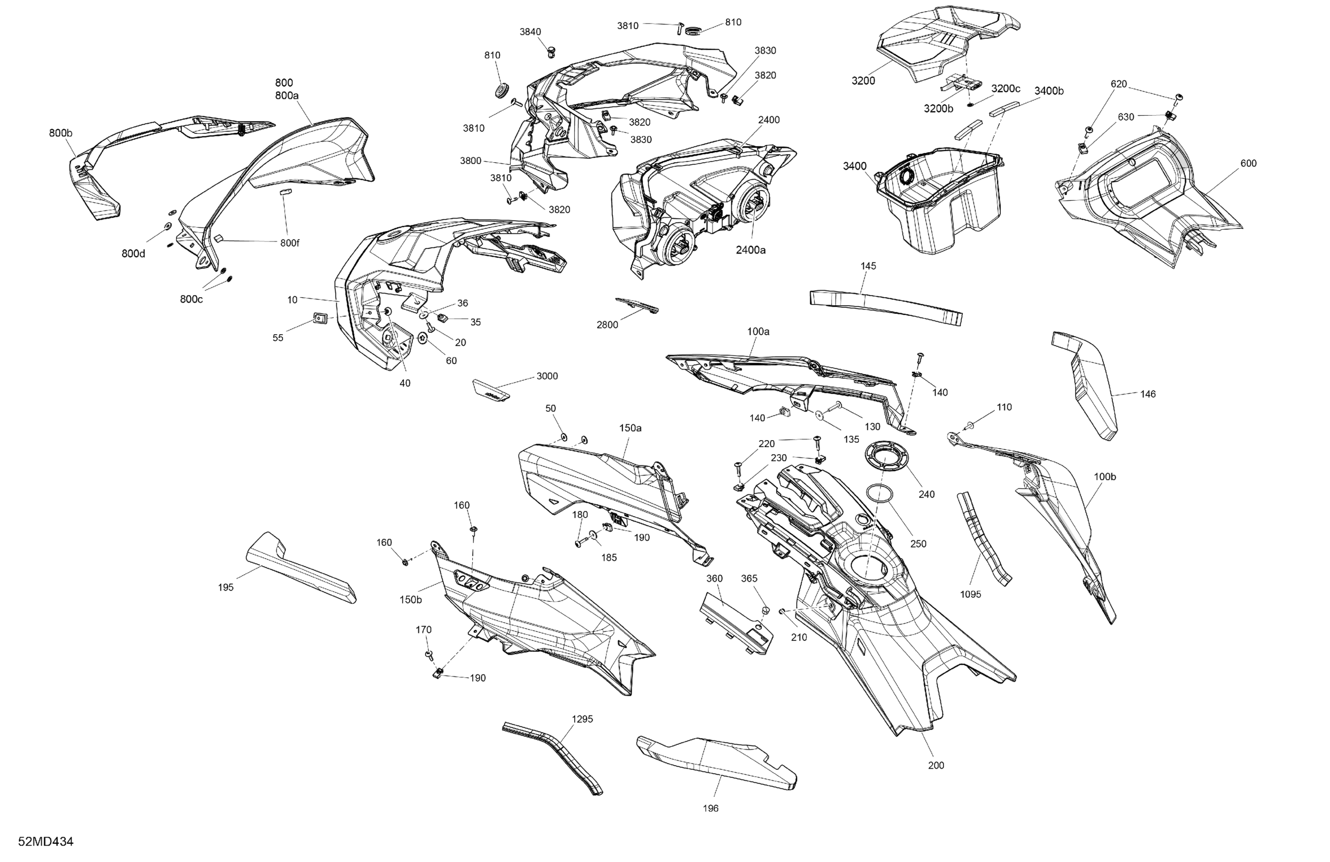 Ski-Doo North America - RENEGADE 600 ACE - SPORT - MCRA - Neo Yellow - 137X15X1.25RS Track, 2024 07- Body - Hood Diagram