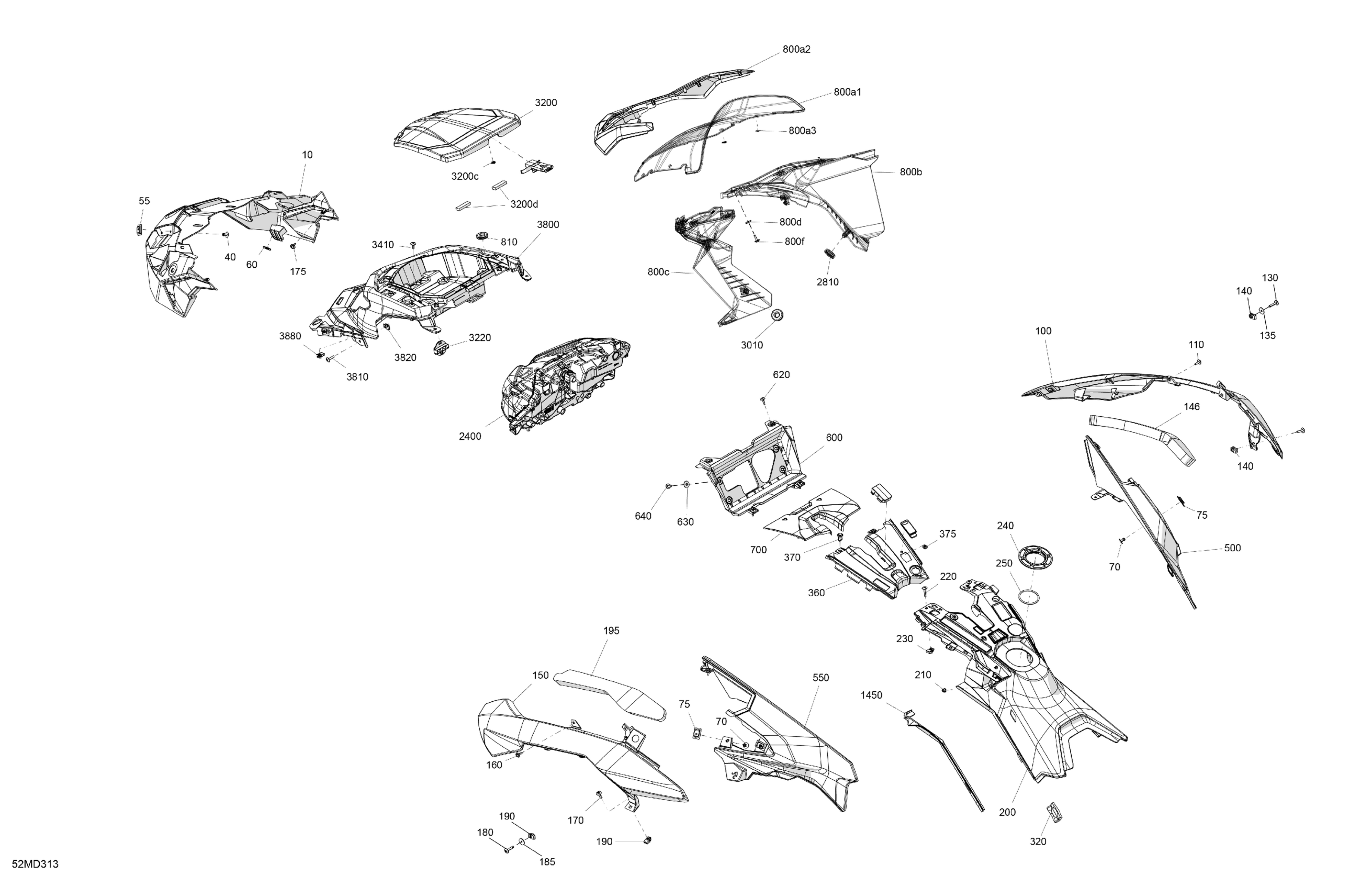 Ski-Doo RENEGADE 600R E-TEC - Adrenaline with Enduro Package - USRA - Neo Yellow - 137X15X1.25IR Track, 2024 Body - Hood Diagram