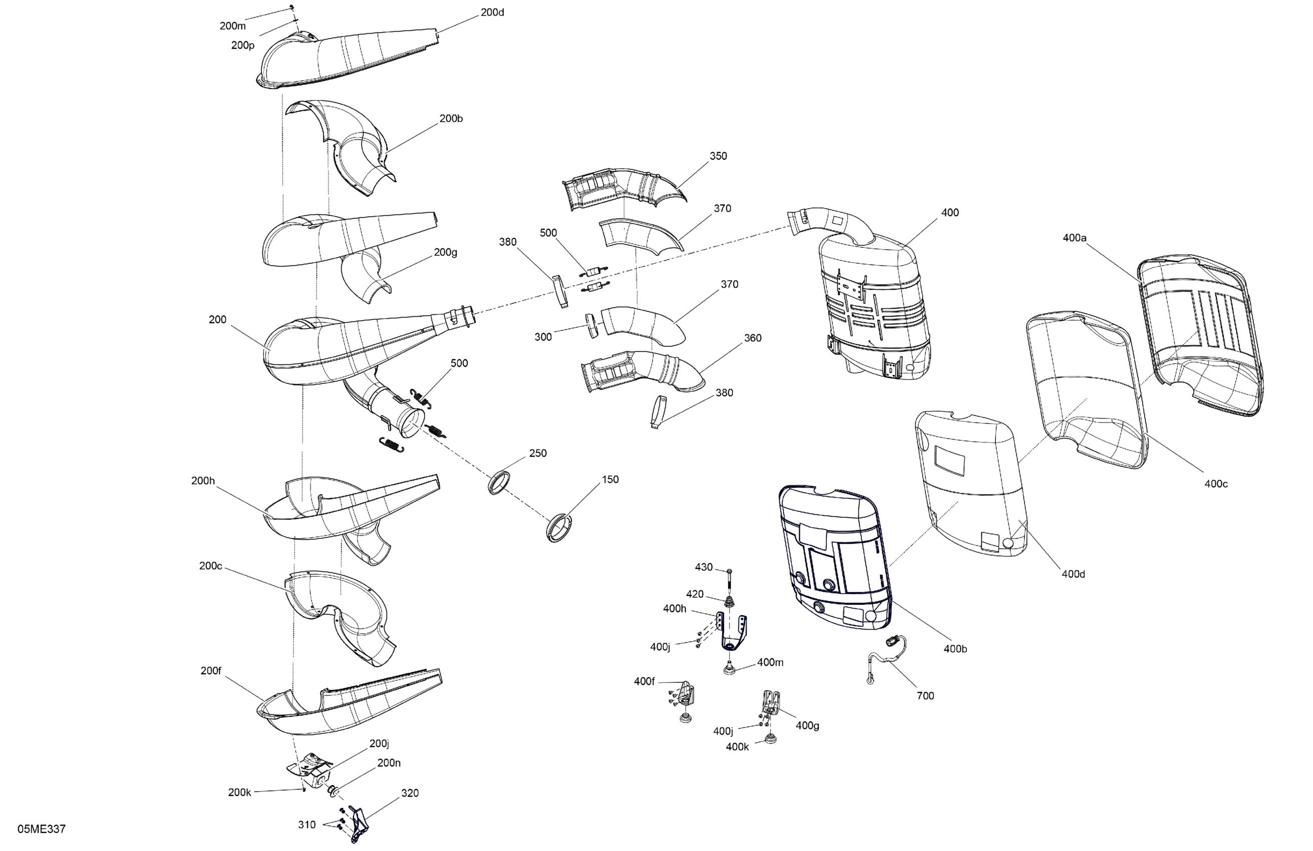 Ski-Doo North America - RENEGADE - 600R E -TEC - Adrenaline with Enduro Package - USSA - Deep Black - 137X15X1.25IR Track - 2025 02- Engine - Exhaust Diagram
