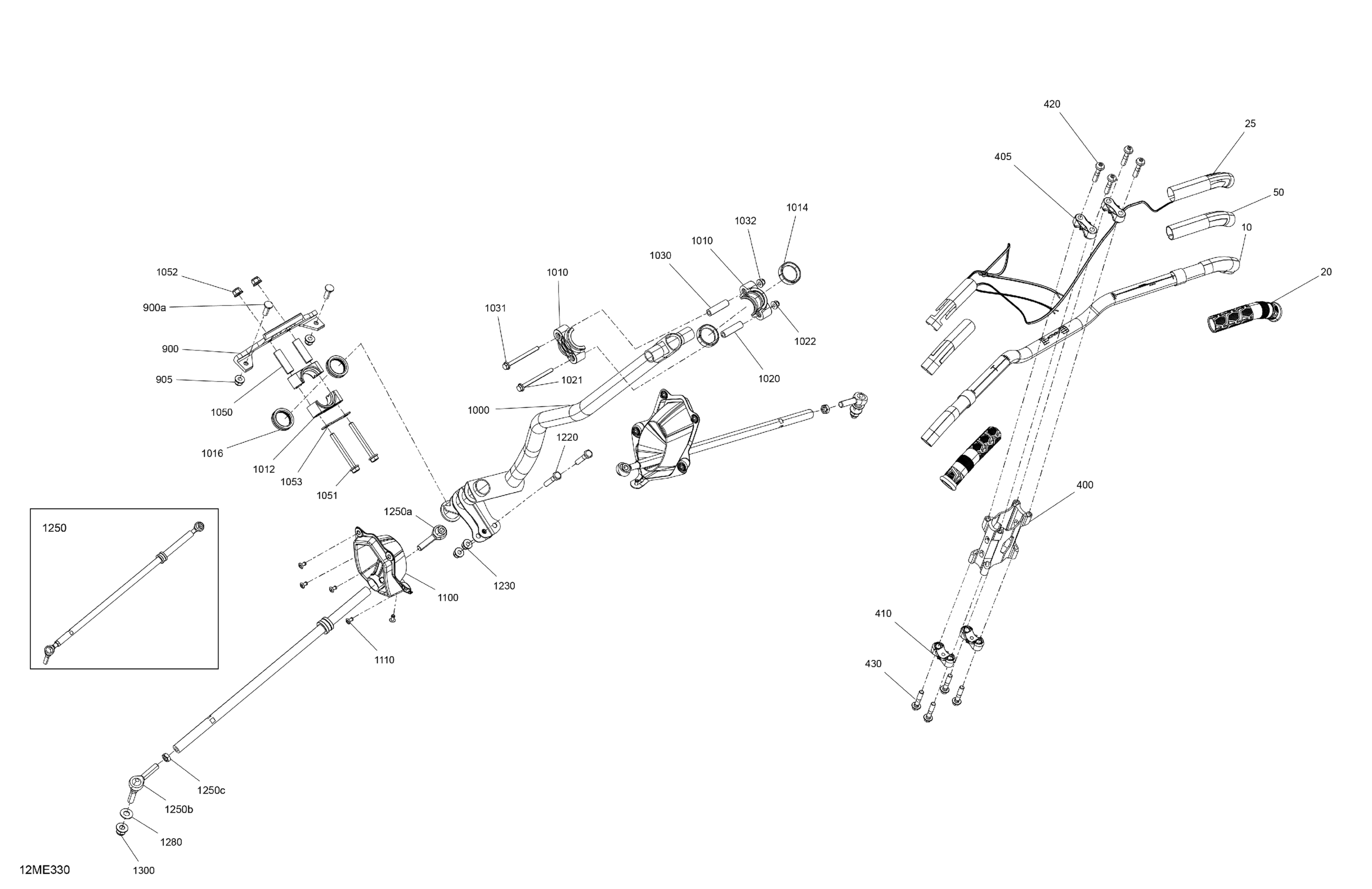 Ski-Doo North America - RENEGADE - 600R E -TEC - Adrenaline with Enduro Package - USSA - Deep Black - 137X15X1.25IR Track - 2025 03- Mechanic - Steering Diagram