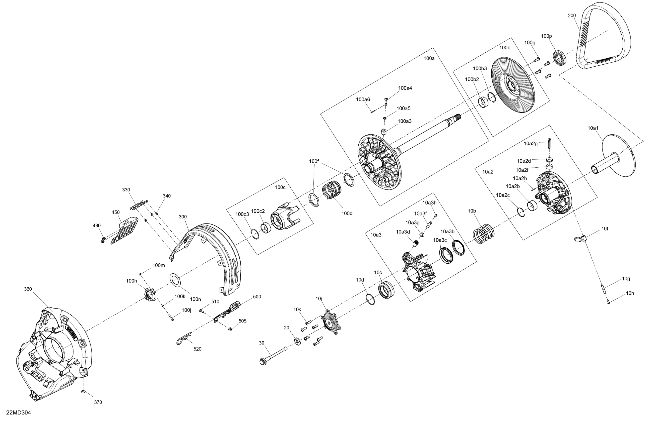 Ski-Doo North America - RENEGADE 900 ACE Turbo - Adrenaline - DURA - Neo Yellow - 137X15X1.25RS Track, 2024 04- Drive - Pulley Diagram