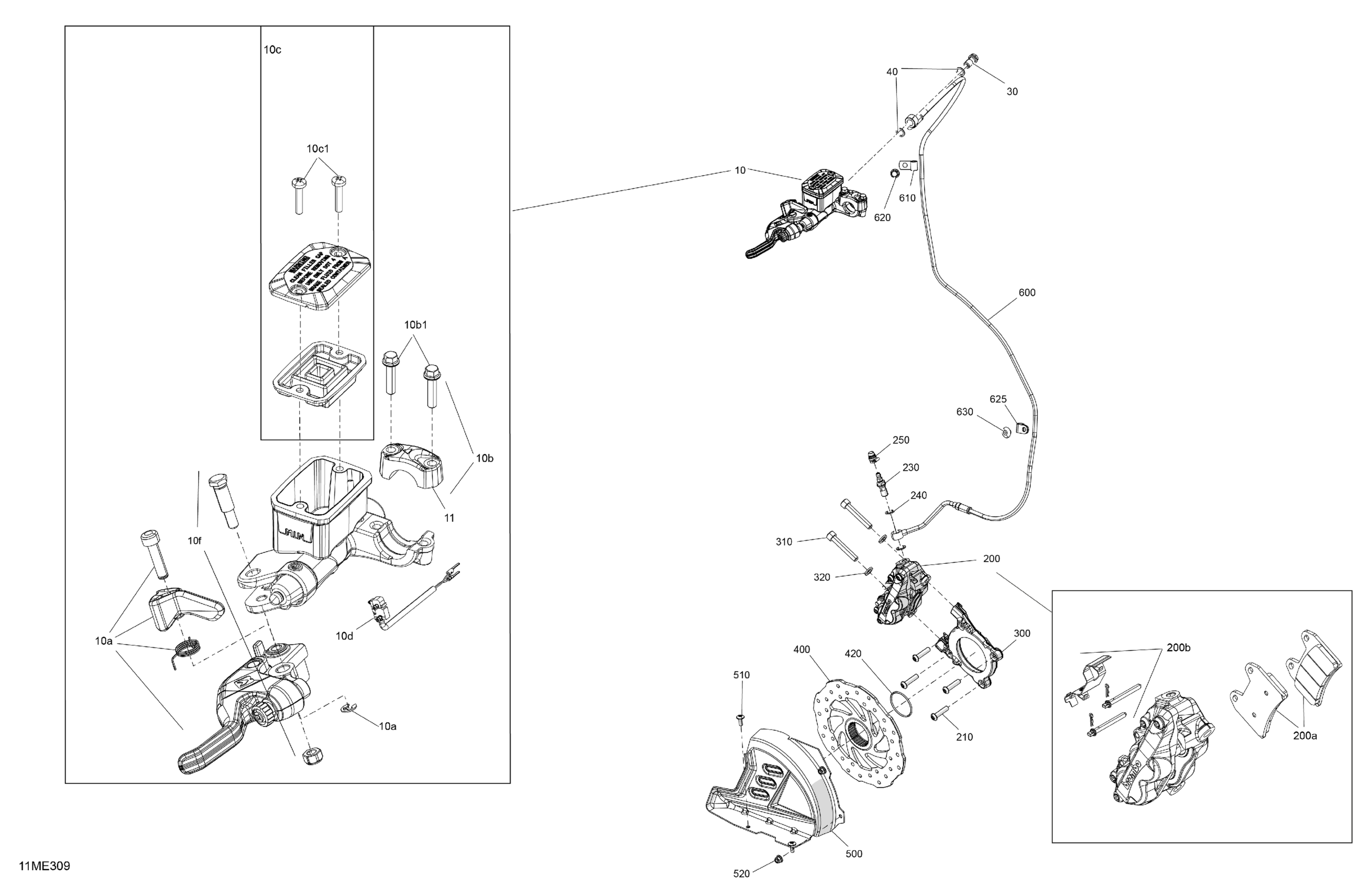Ski-Doo North America - RENEGADE - 900 ACE TURBO R - X-RS - DASA - Deep Black - 137X15X1.5IR Track - 2025 03- Mechanic - Brakes Diagram