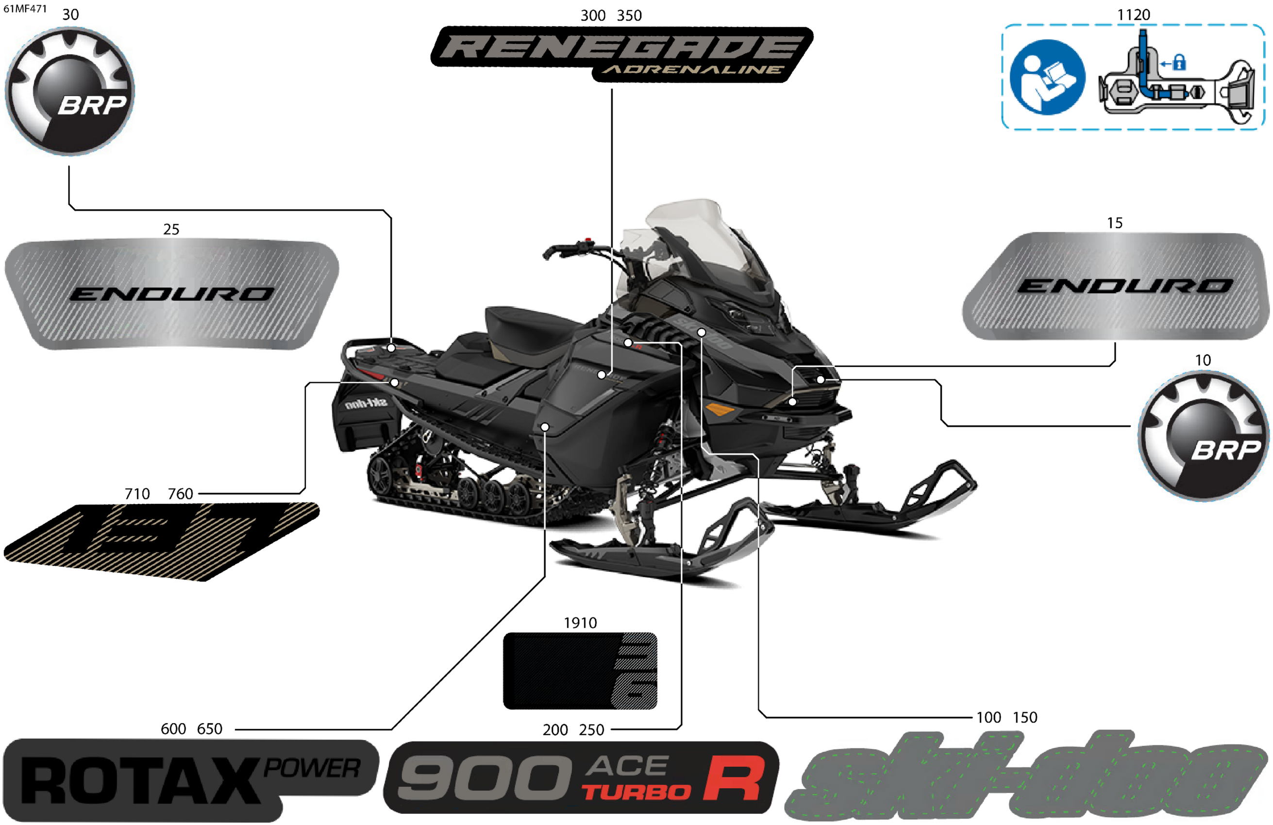 Ski-Doo North America - RENEGADE - Adrenaline with Enduro Package - 900 ACE TURBO R - DPTA - Deep Black - 15X137X1.25IR Track, 2026 07- Body - Decals Diagram